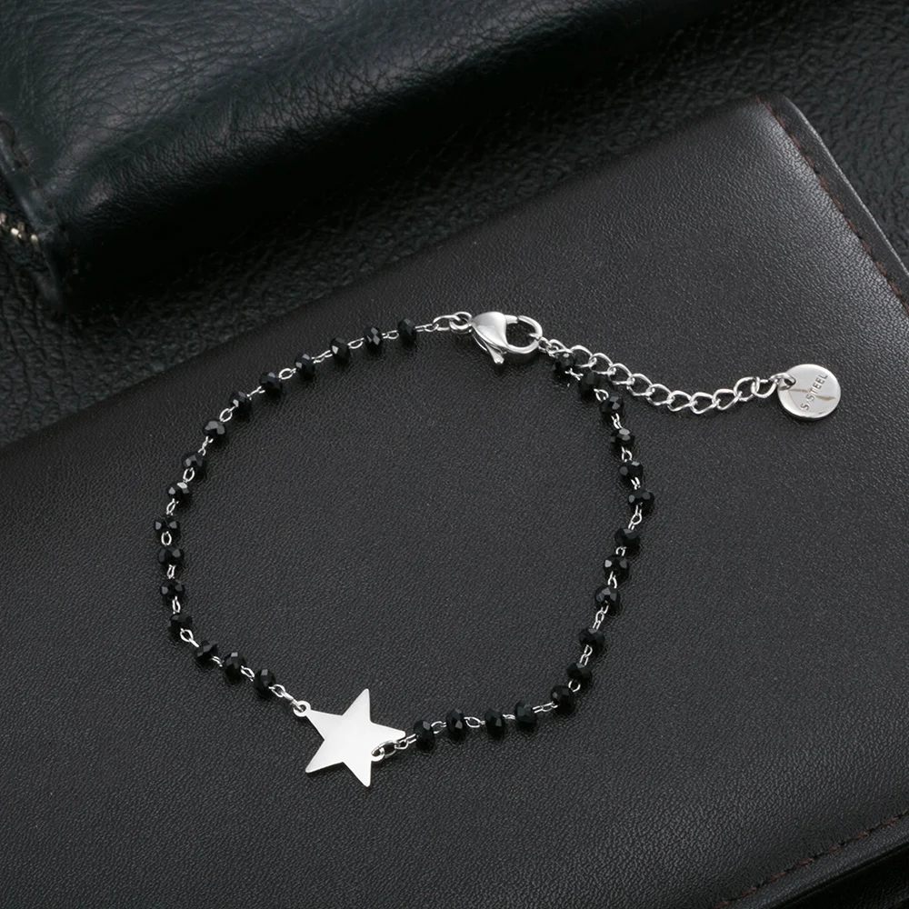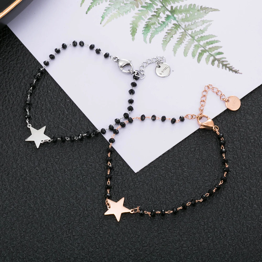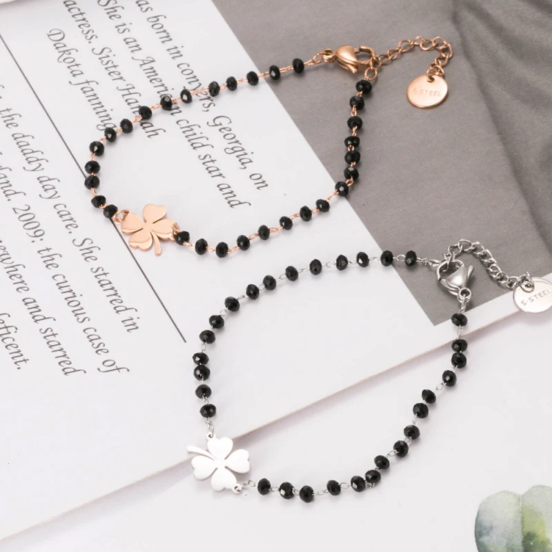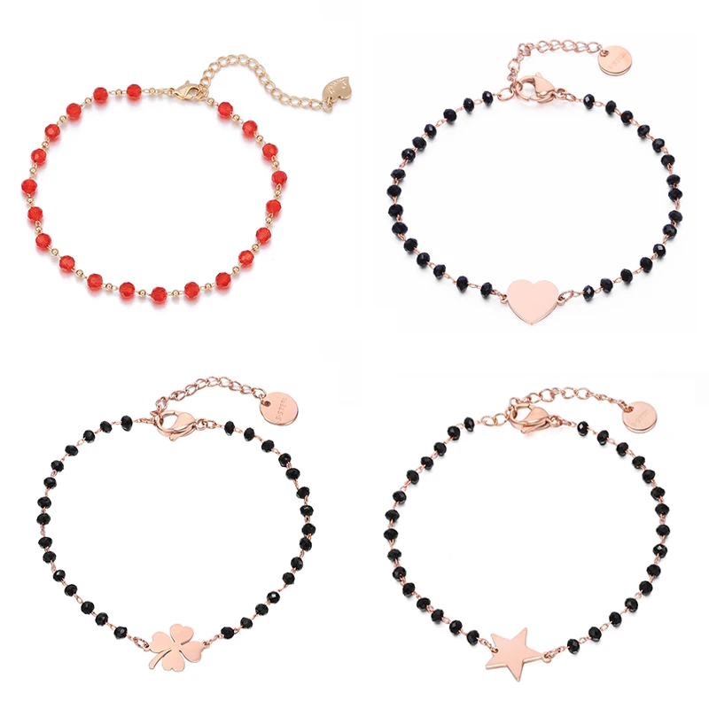 Браслет женский из нержавеющей стали, с черными и красными бусинами, в форме сердца, клевера, звезды, сердца, 2020