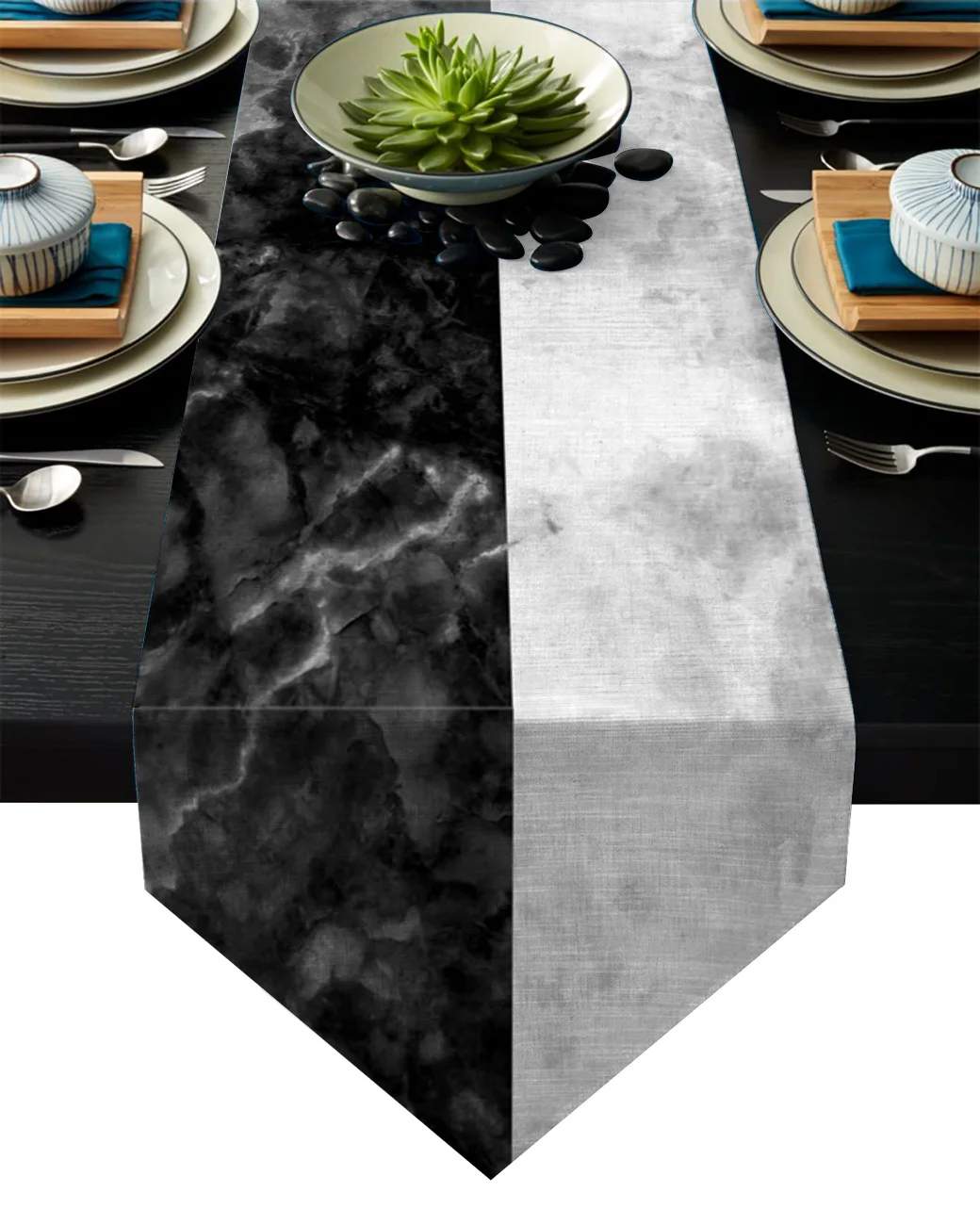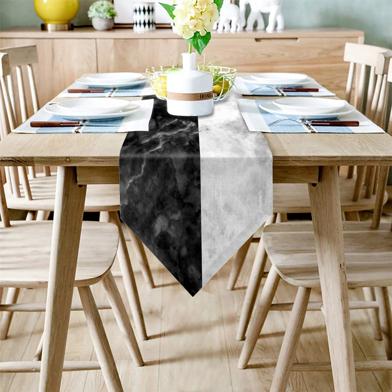 Белый черный мрамор натуральный современный Настольный бегун для свадебной вечеринки Рождественский торт Цветочная скатерть, украшение для дома