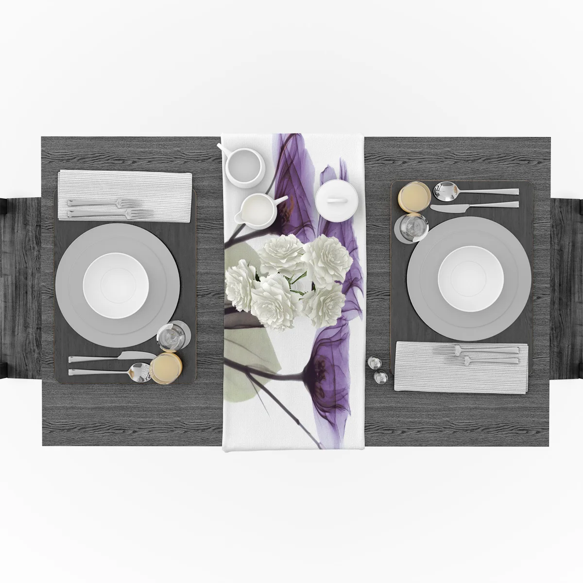 Фиолетовая белая скатерть с хризантемами, настольная дорожка с флаг...