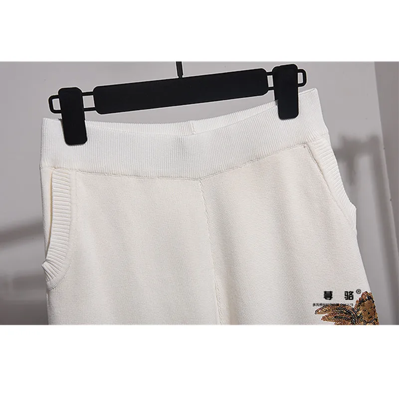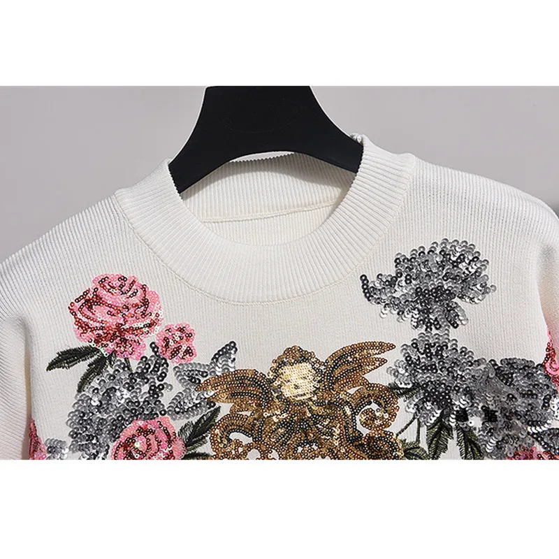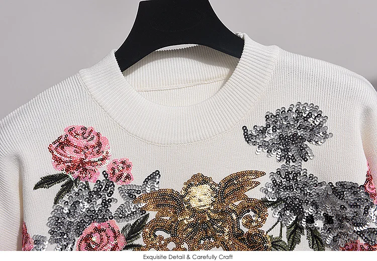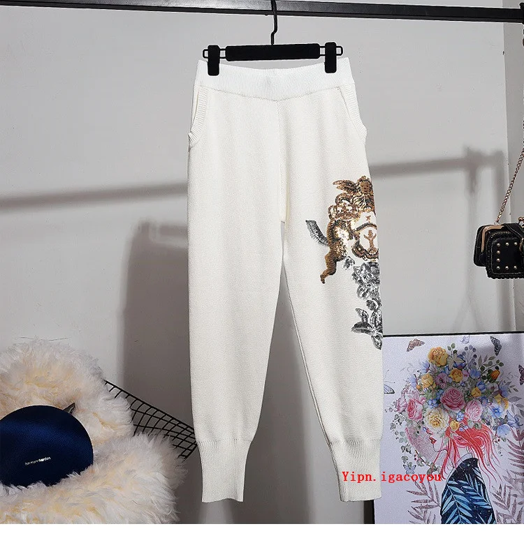 Женский вязаный свитер с блестками и цветочным принтом, спортивный костюм-карандаш, свободный черный спортивный костюм из 2 предметов на осень