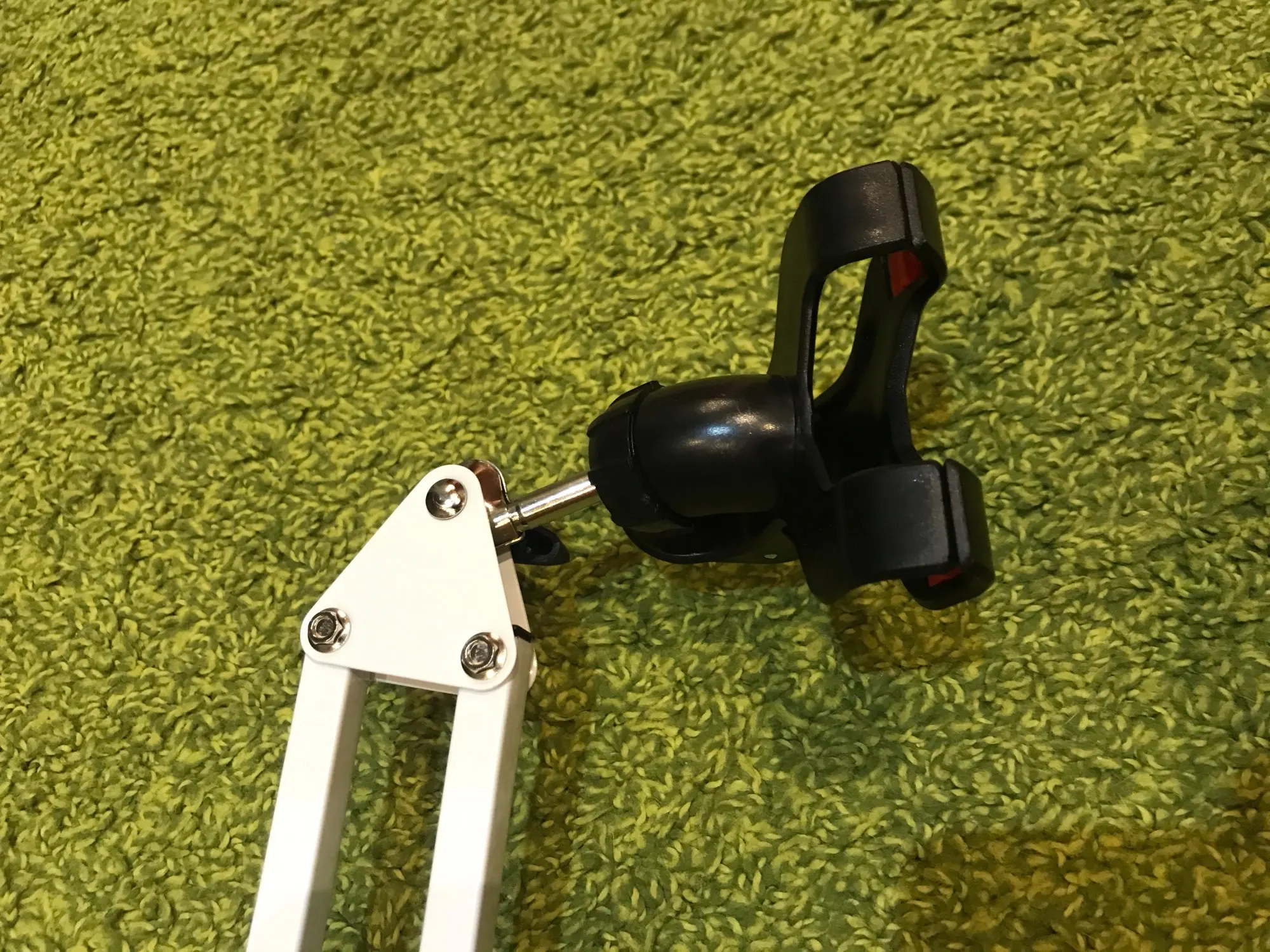Классная держалка!!! Очень надёжно всё фиксируется в каждом колене, ничего не трясётся и не болтается. Прищепка хоть и пластиковая, но внушает доверие, выглядит довольно прочной.