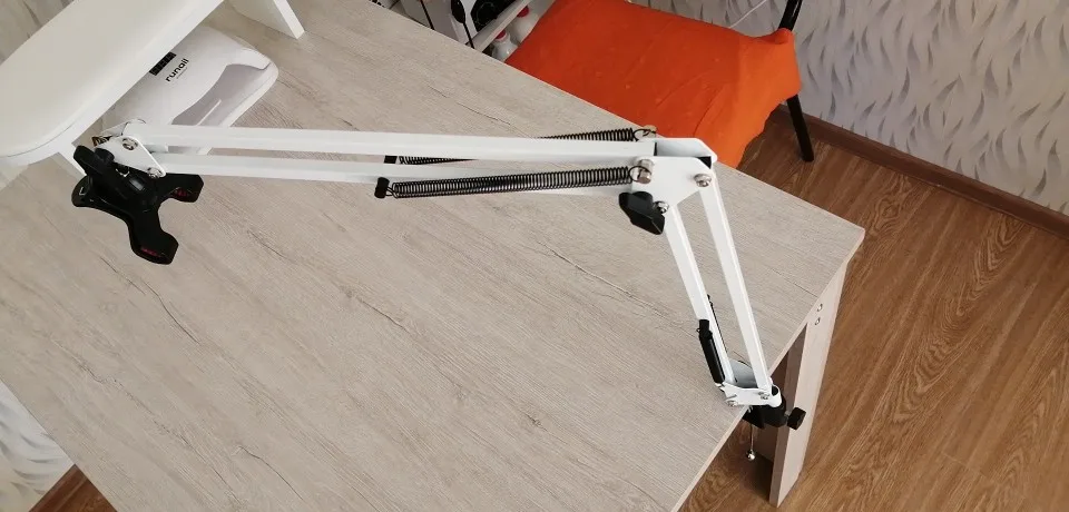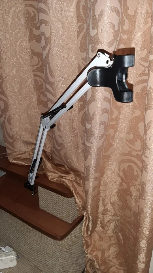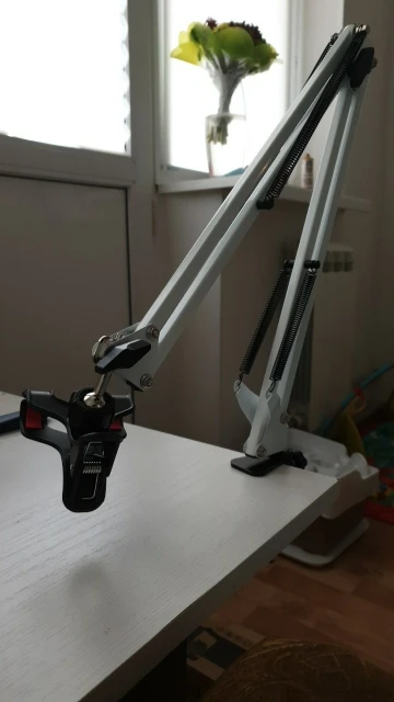 Штатив очень понравился! Основательный, металлический! Большой запас для разной толщины столешницы, можно даже к подоконнику прикрутить. Одна пластиковая деталь - держатель телефона, надеюсь проживет долго)) Заказала 21.01, а 25 уже доставил курьер на дом! Супер!!!
