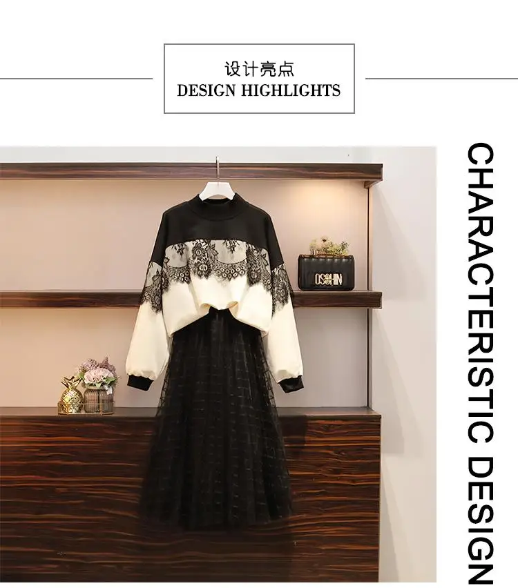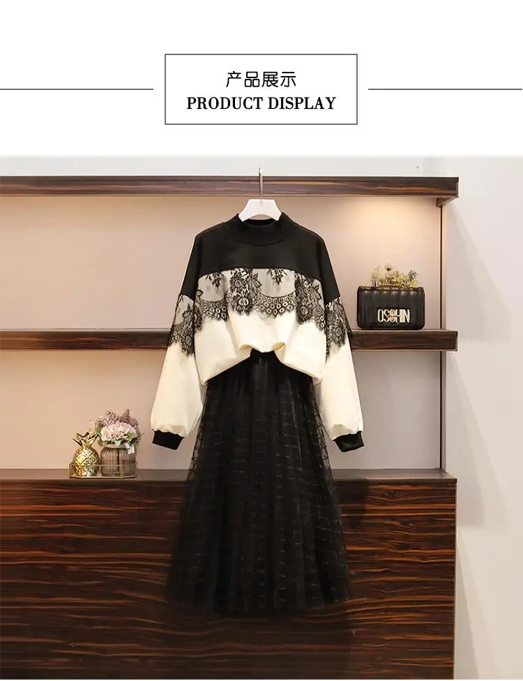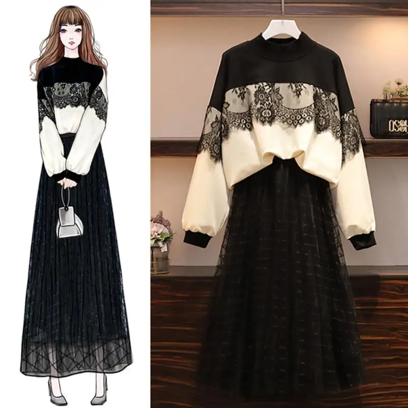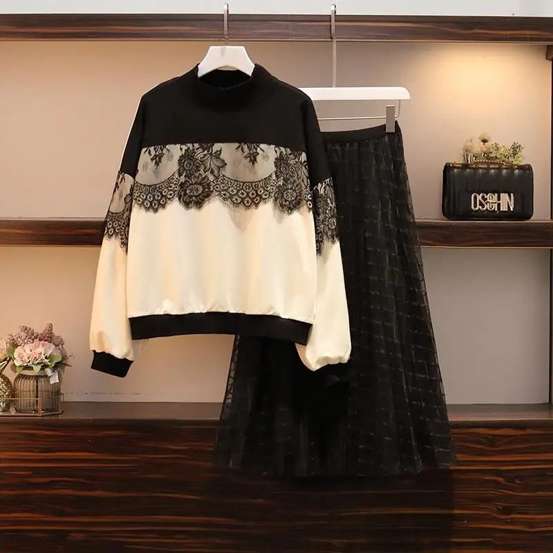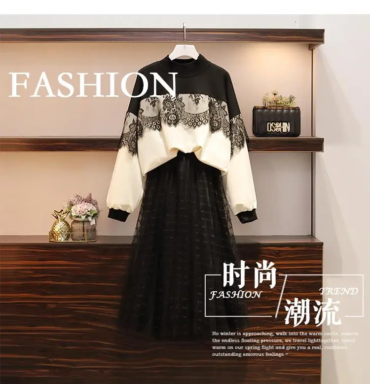 L-4XLAutumn, зимние женские костюмы большого размера, костюм из 2 предметов, топы с длинными рукавами + длинная юбка с эластичной резинкой на талии, комплект повседневного размера плюс, комплект из 2 предметов