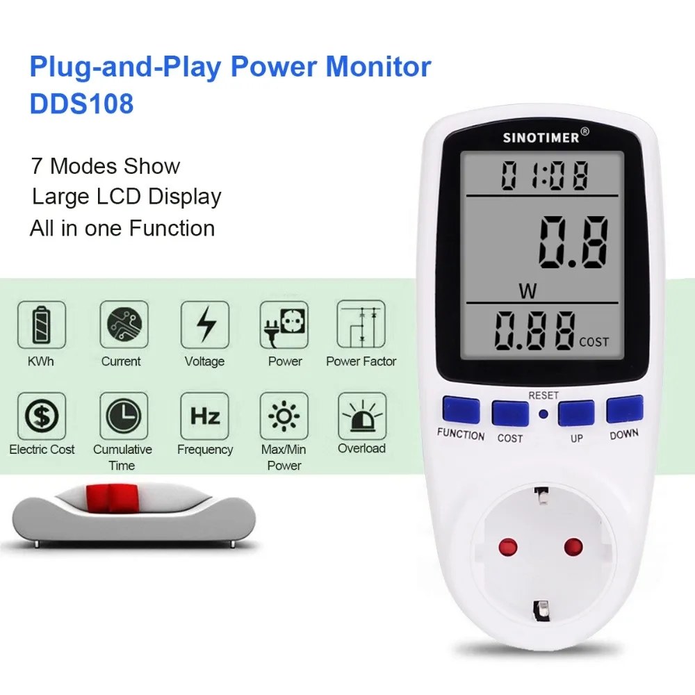 Цифровой ваттметр DDS108, 230120 В, потребляемая мощность, измеритель энергии, кВтч, анализатор электроэнергии переменного тока