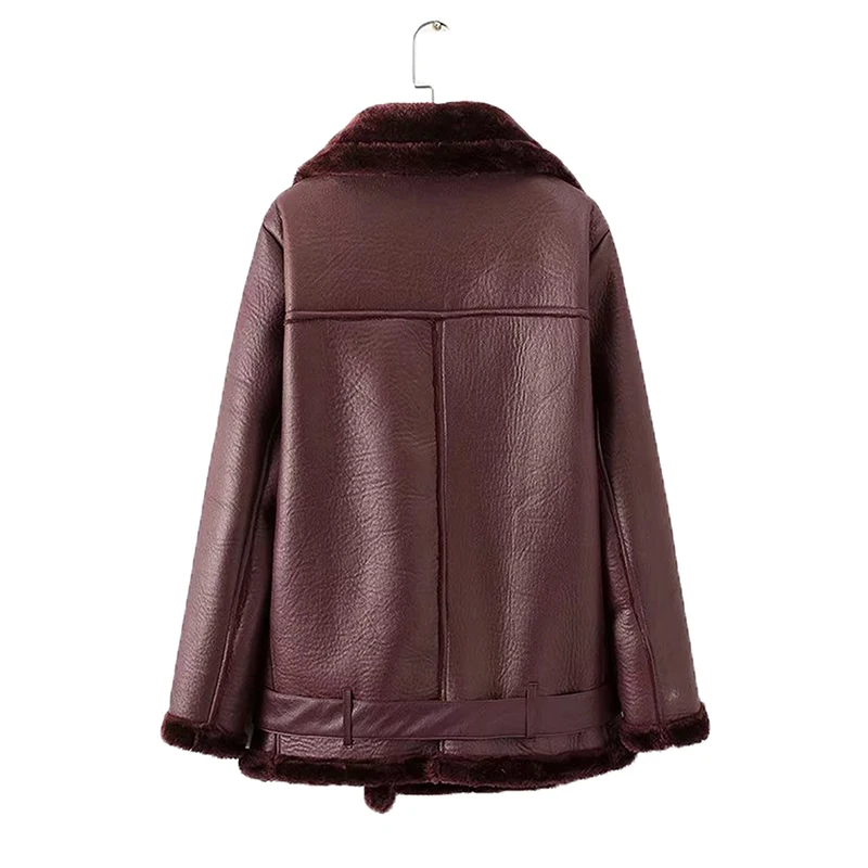 Пальто Ailegogo, зимнее, женское, из искусственной кожи, с мехом овчины, куртка-Авиатор, верхняя одежда