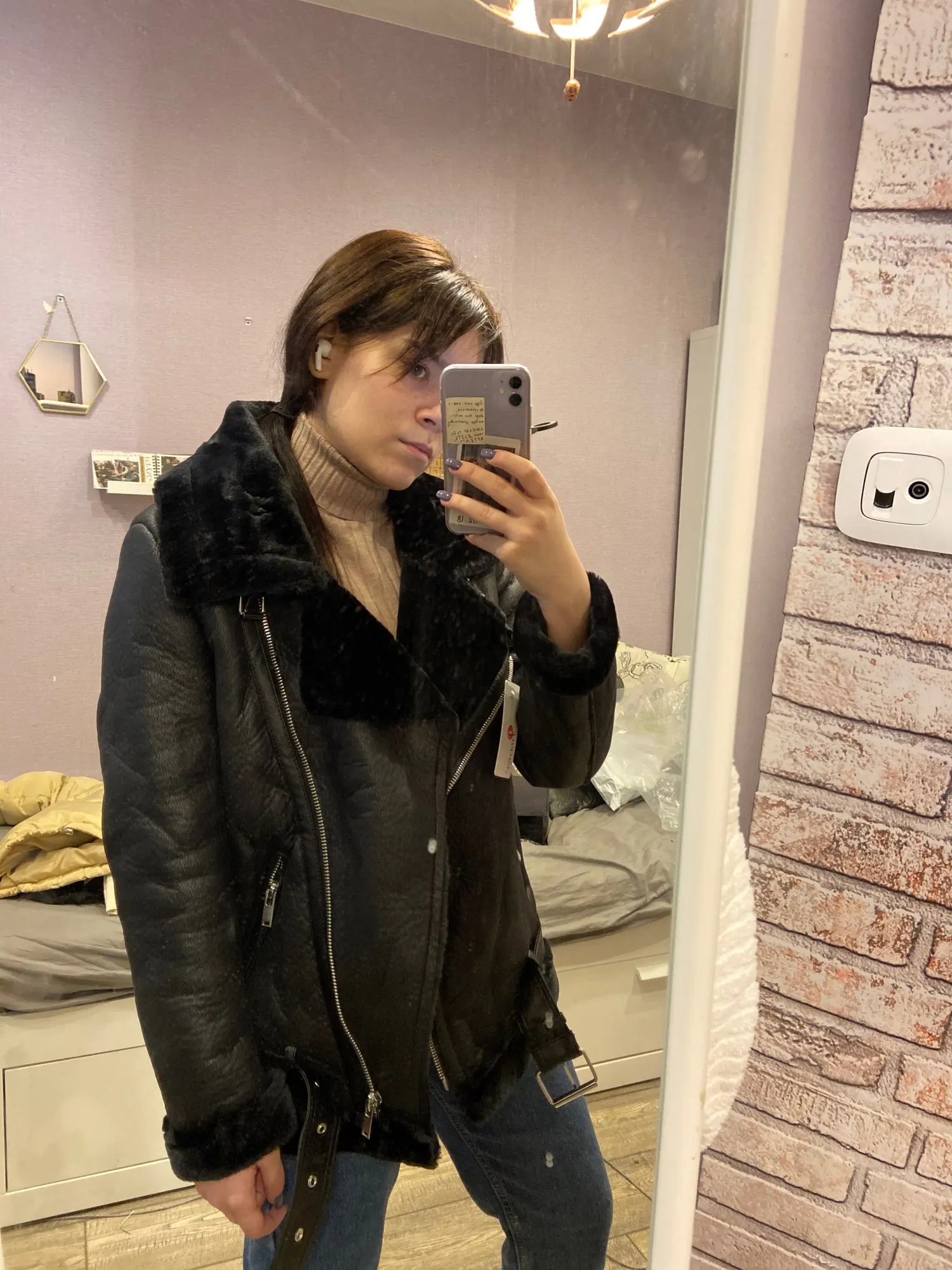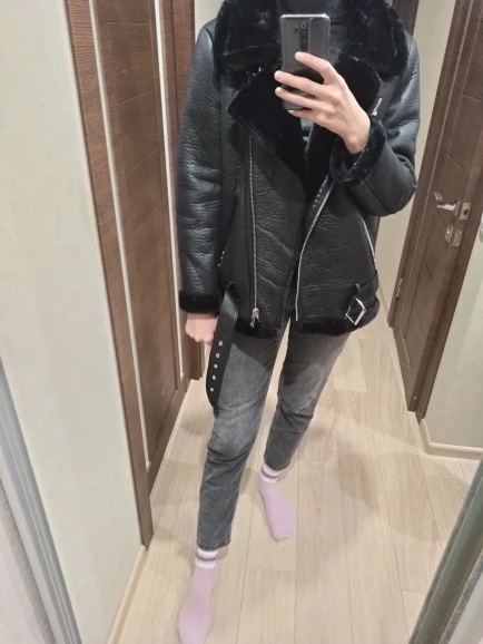Лучшая покупка на Али, за все время. дублёнка очень круто смотрится. На размер xs (рост 160 вес 45кг) s подошла отлично, единственное не надеть толстый свитер иначе в рукавах будет тесновато. Мех лезет очень сильно, но для меня это не проблема, доставка заняла 24дня, поэтому 5 звезд