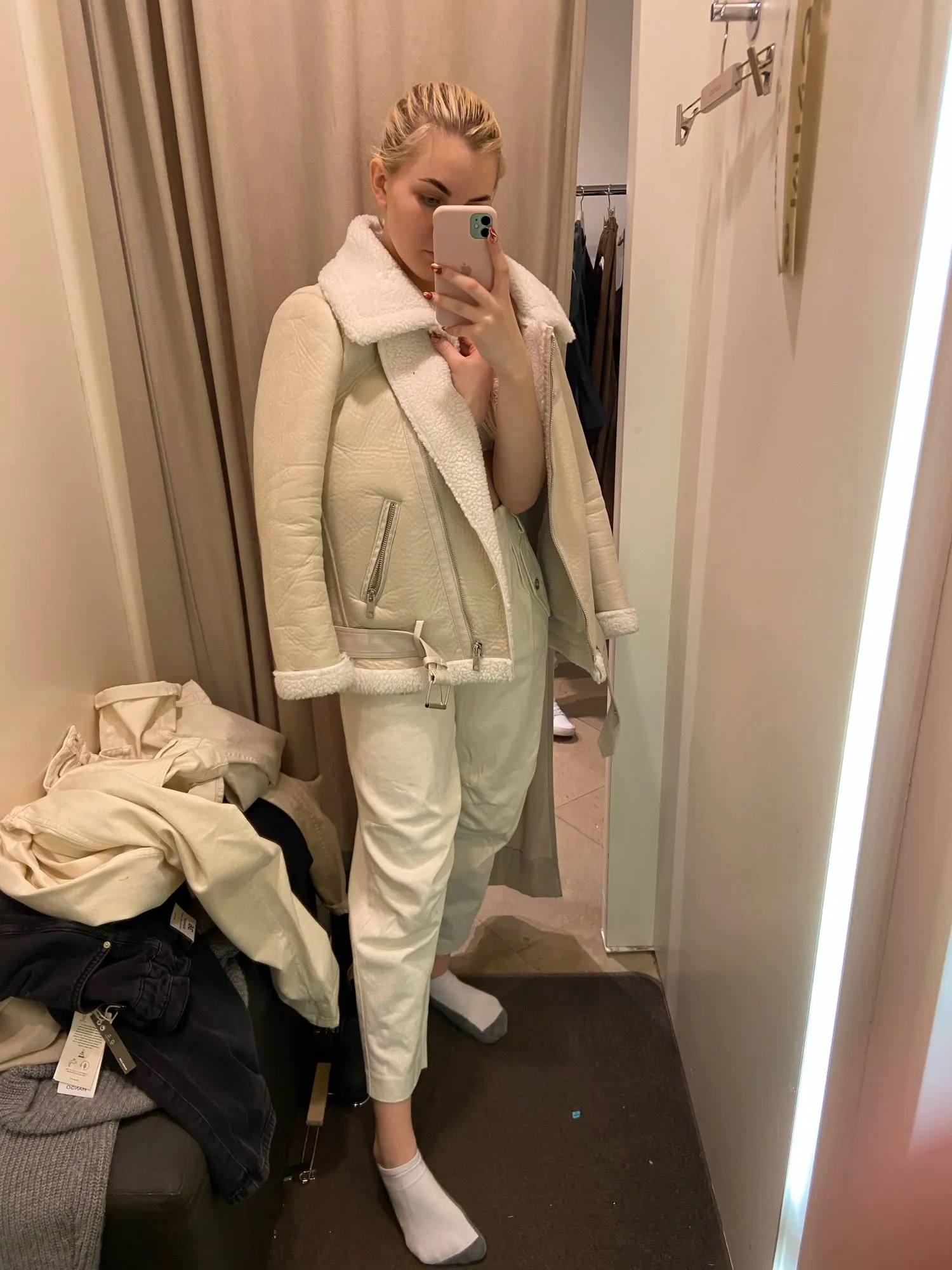 Дубленка очень понравилась,гуляла с ребёнком,при сильном ветре в +2, вполне комфортно. Высокий ворот,не задувает в шею, пояс застегивается, снизу тоже не поддувает! Огонь!) неплохая фурнитура,есть петелька, удобные карманы. Размер s отлично подошёл на наш 42, рост 165, длина хорошая,чуть прикрывает попу, удобно ездить в машине. По внутренней стороне нужно пройти липким валиком,убрать остатки стриженого меха. Внешняя сторона - ткань с пропиткой,внутри и на воротнике и рукавах - экомех. Дубленка огонь,рекомендую!!!
