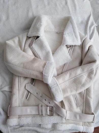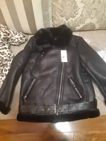 Хорошего качества искусственная дубленка , мне размер S на 38-й европейский , как оверсайз ; без запаха , немного линяет) изнутри , оставляя небольшие кусочки меховой части на одежде , но не критично . Доставка не быстрая.