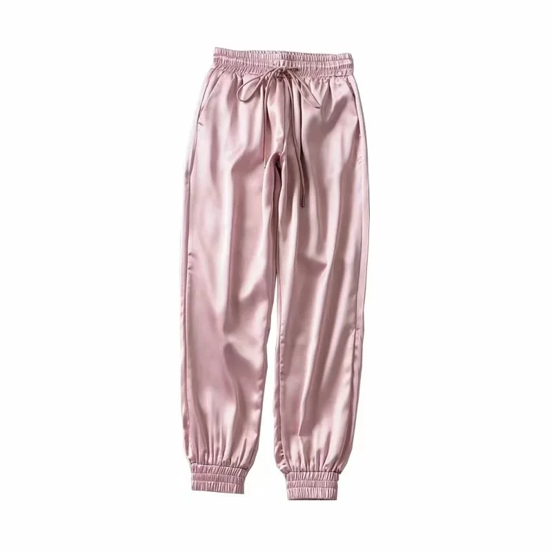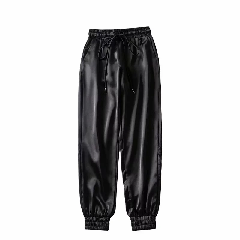 Брюки женские тренировочный штаны женские атласные, модные джоггеры, уличная одежда в стиле хип-хоп, милые розовые штаны с завышенной талией, черные, осень 2021