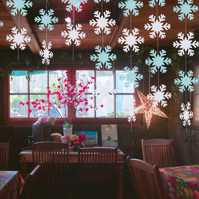 Искусственные снежинки, бумага, гирлянды, сделай сам, Рождественское украшение, настенный потолок, подвесной баннер, декор для вечеринки, рождественские украшения