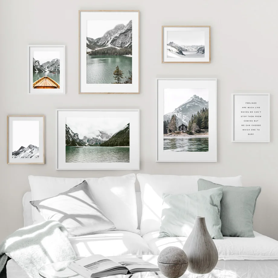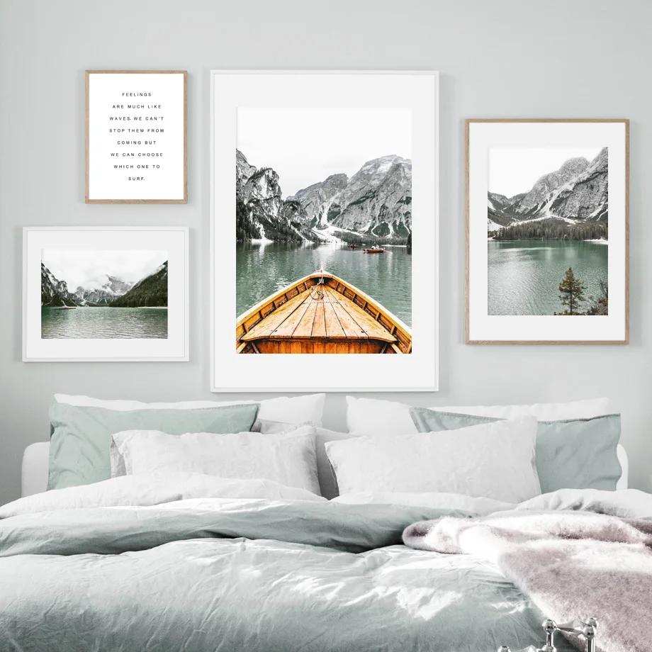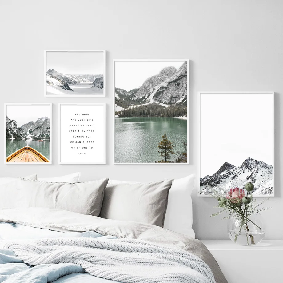 Alps Ice Гора Озеро Лодка лес дом настенная Картина на холсте скандинавские постеры и принты настенные картины для декора гостиной