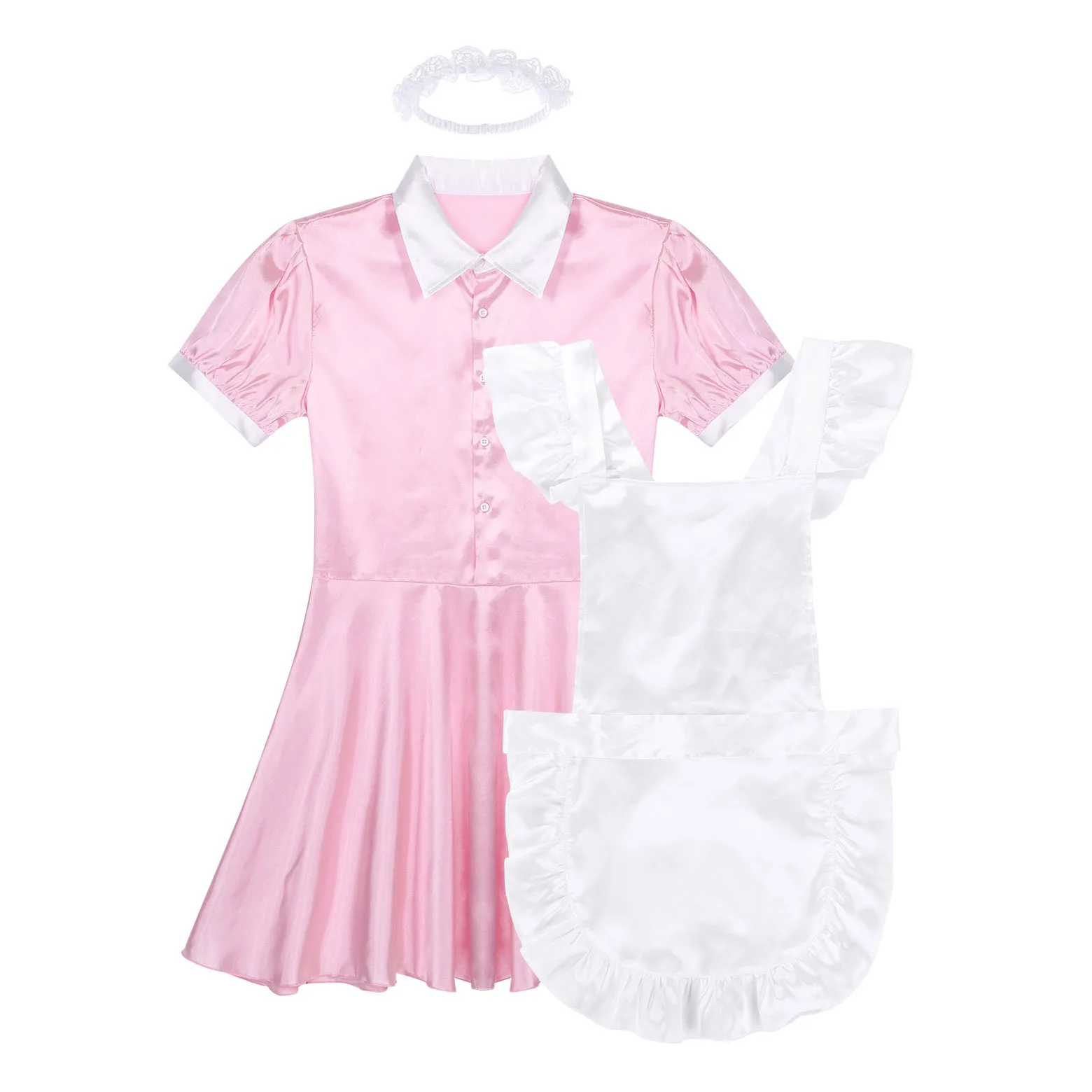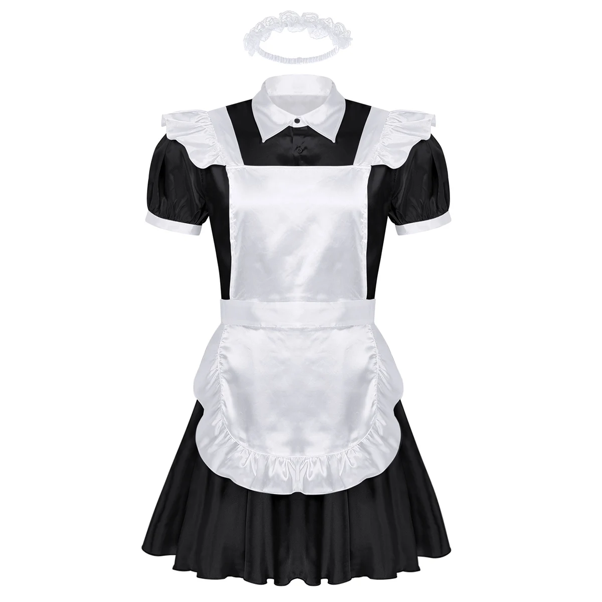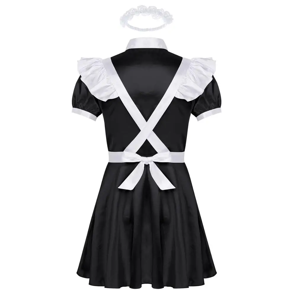 Мужское нижнее белье, горничная Сисси, сексуальный костюм для косплея, наряд, отложной воротник, спереди, на пуговицах, нарядное платье с фартуком и повязкой на голову