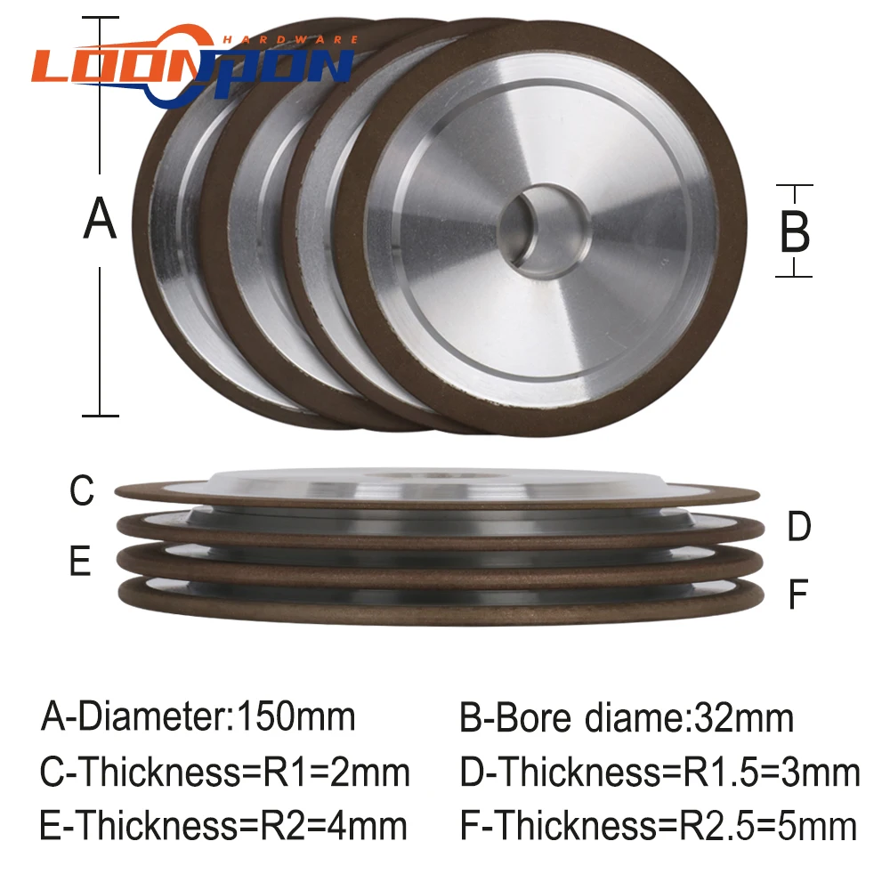 Алмазный шлифовальный круг 125 мм 150 мм, шлифовальный станок из смолы для шлифования карбида металла R1R1.5R2R2.5, зернистость 150, зеленый песок