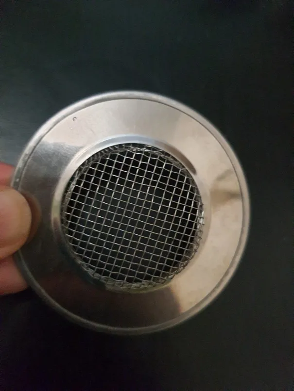 Немного искривлен и не очень плотно прилягает. Но свою задачу выполняет. Сетку можно подогнуть по нужному диаметру и высоте