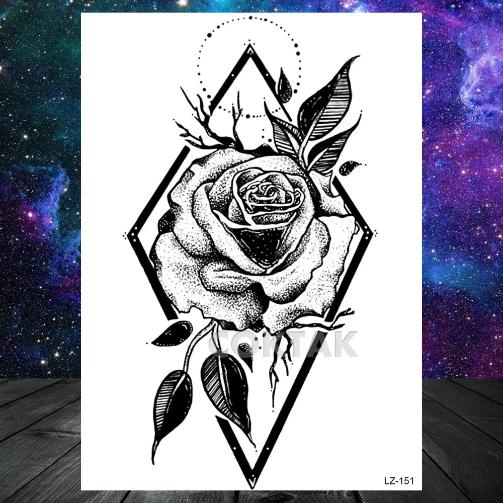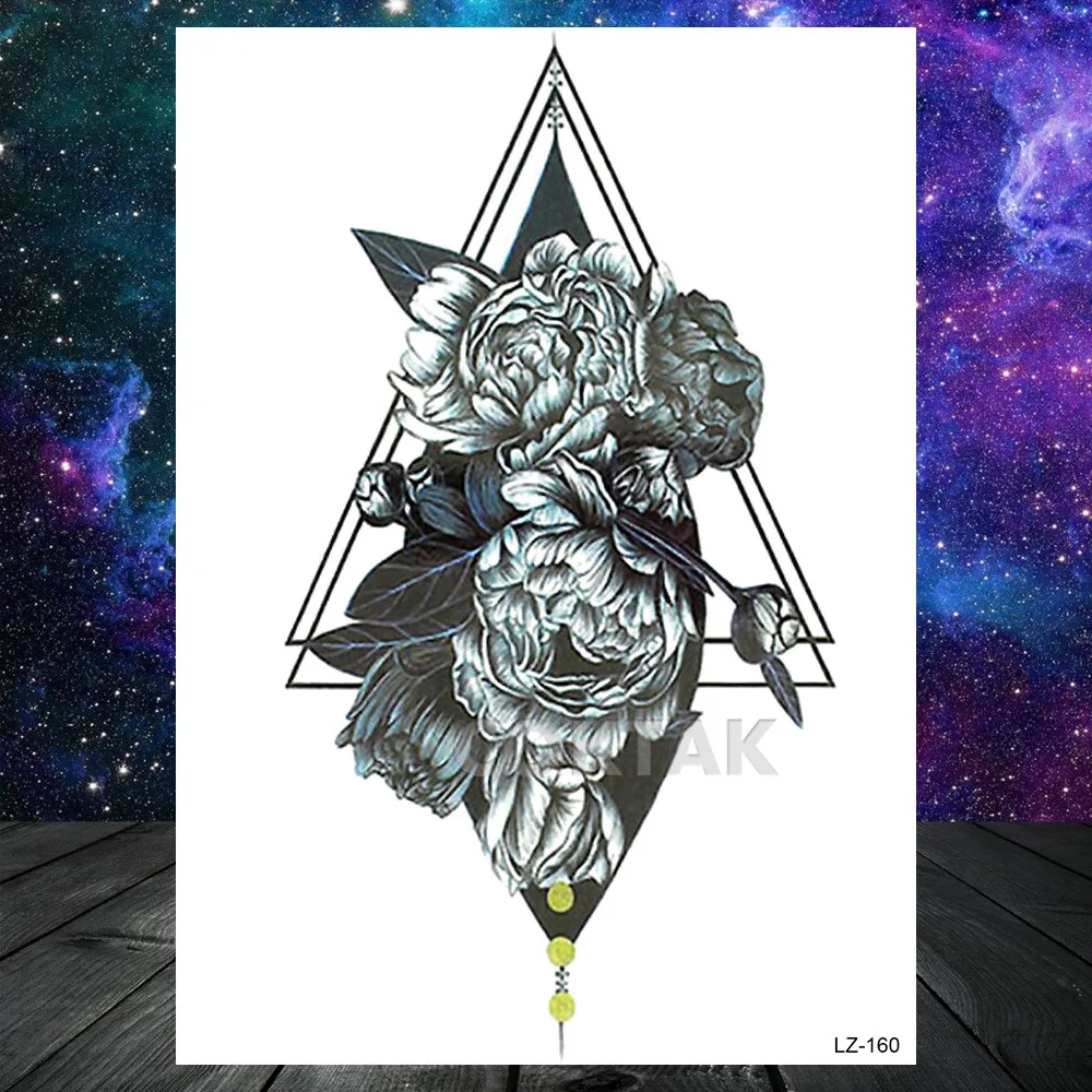 Временная татуировка с геометрическим цветком, красивая искусственная Роза, лотос, пион, татуировки для женщин и девочек, боди-арт, вечерние татуировки на руку