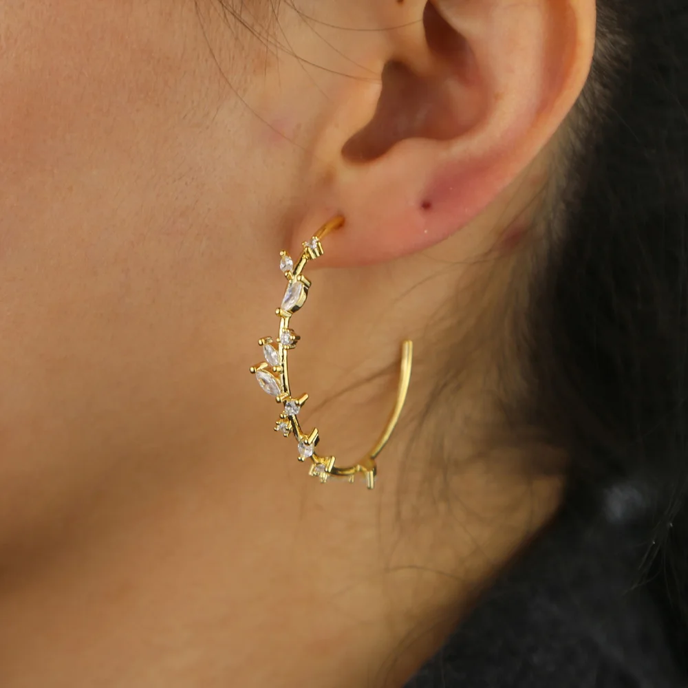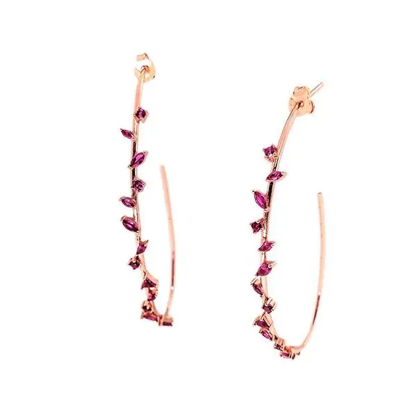 Женские серьги-кольца с фианитом, золотистые серьги-кольца с листьями и фианитами, красного, зеленого и белого цвета, весна 2022