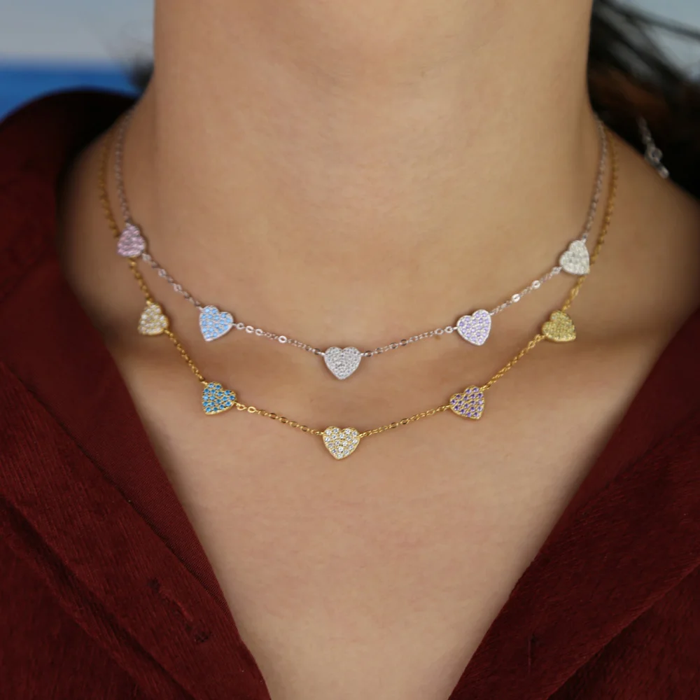 Шарма сердца изысканное колье-чокер 100% 925 стерлингового серебра деликатный цепи Радуга CZ с украшением в виде кристаллов для женщин обручальные кольца на День Матери