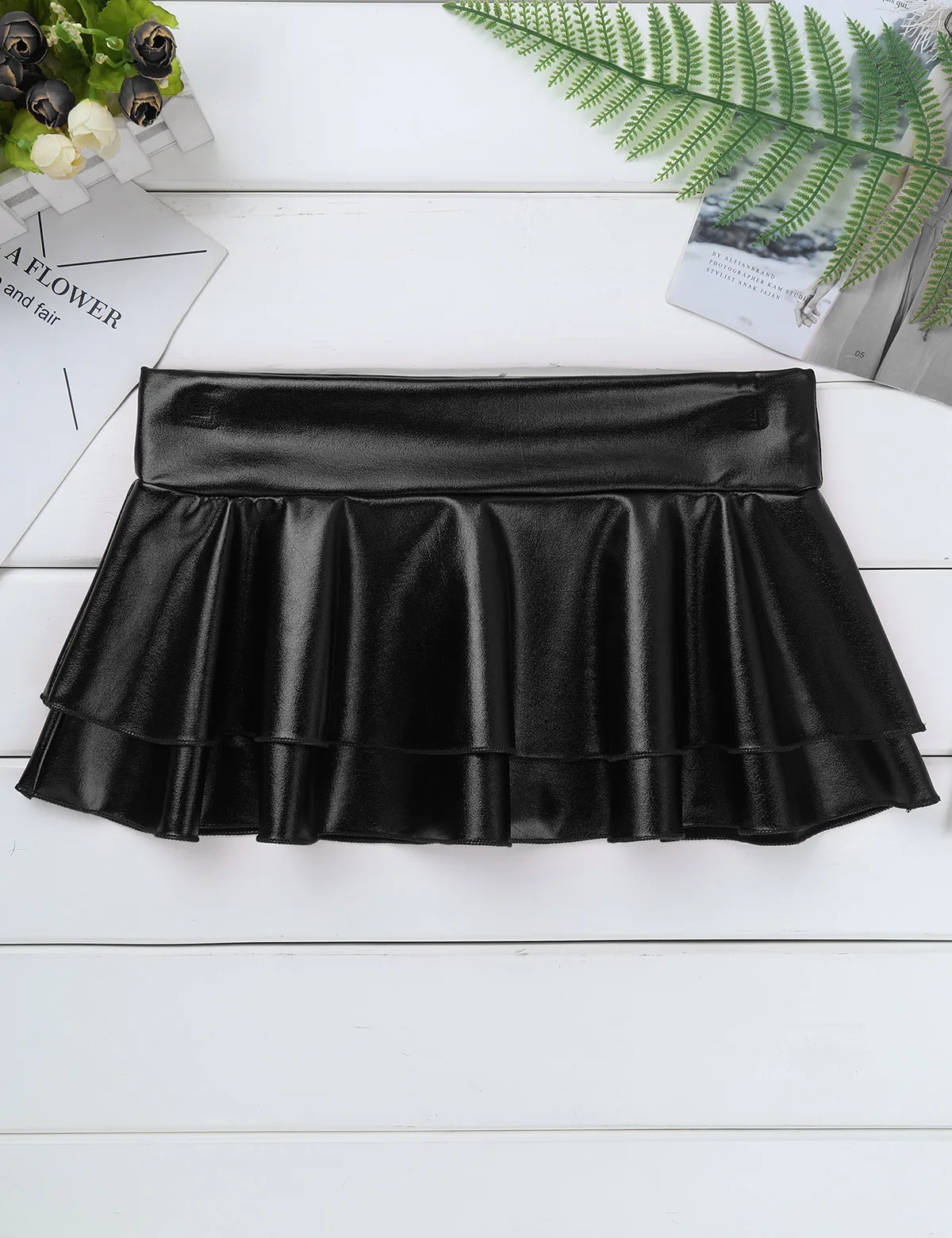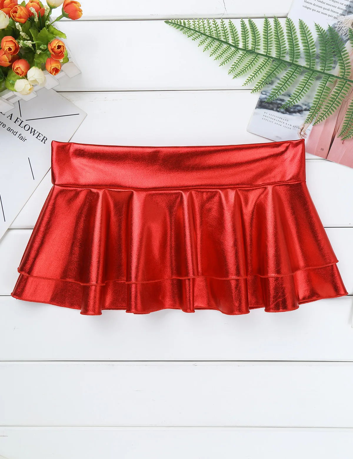 Юбка женская кожаная Плиссированная, с низкой посадкой, металлик