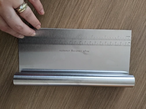 За свою цену отличный кухонный инструмент. Есть небольшая шероховатость по кромке, но при работе не мешает. Отлично режет различные типы теста, позволяет снимать со стола готовые изделия, муку и пр. Для легкого выкладывания со шпателя на противень советую слегка при необходимости смазать его растительным маслом.