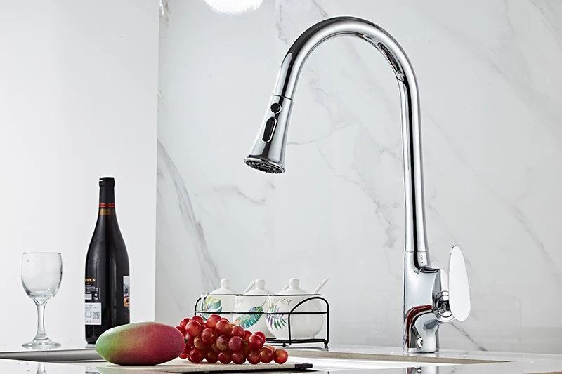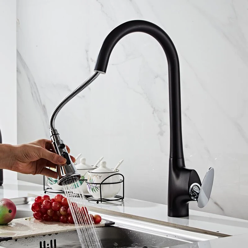 Кухонный Смеситель Kithchen, роскошный выдвижной кран на раковину, латунь, поворот на 360 градусов, кран с одним отверстием