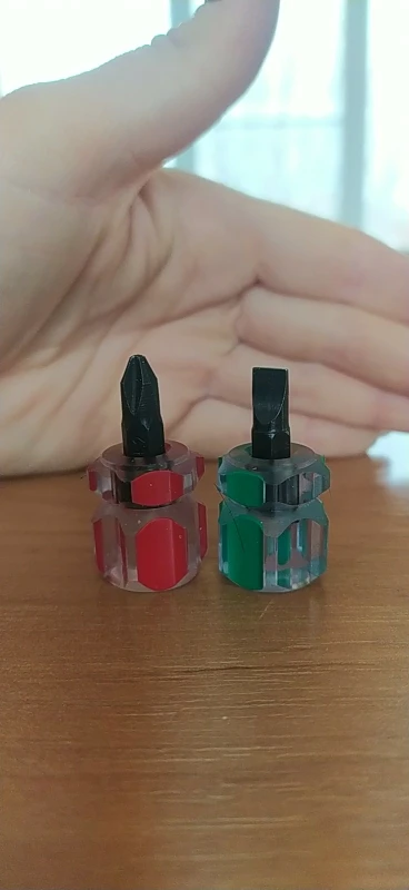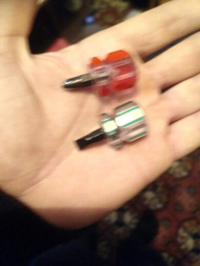 Отличные компактные, маленькие две отвертки: плоская и крестообразная. Теперь можно будеть спокойно откручивать болтики на швейной машинке. Но муж грозился отобрать, уж очень понравились и ему))
