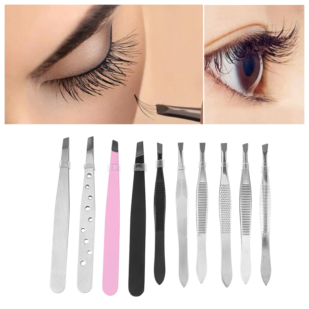 Пинцет для бровей из нержавеющей стали 10 шт.партия, щипцы для волос, триммер для бровей, зажим для наращивания ресниц, инструменты для макияжа