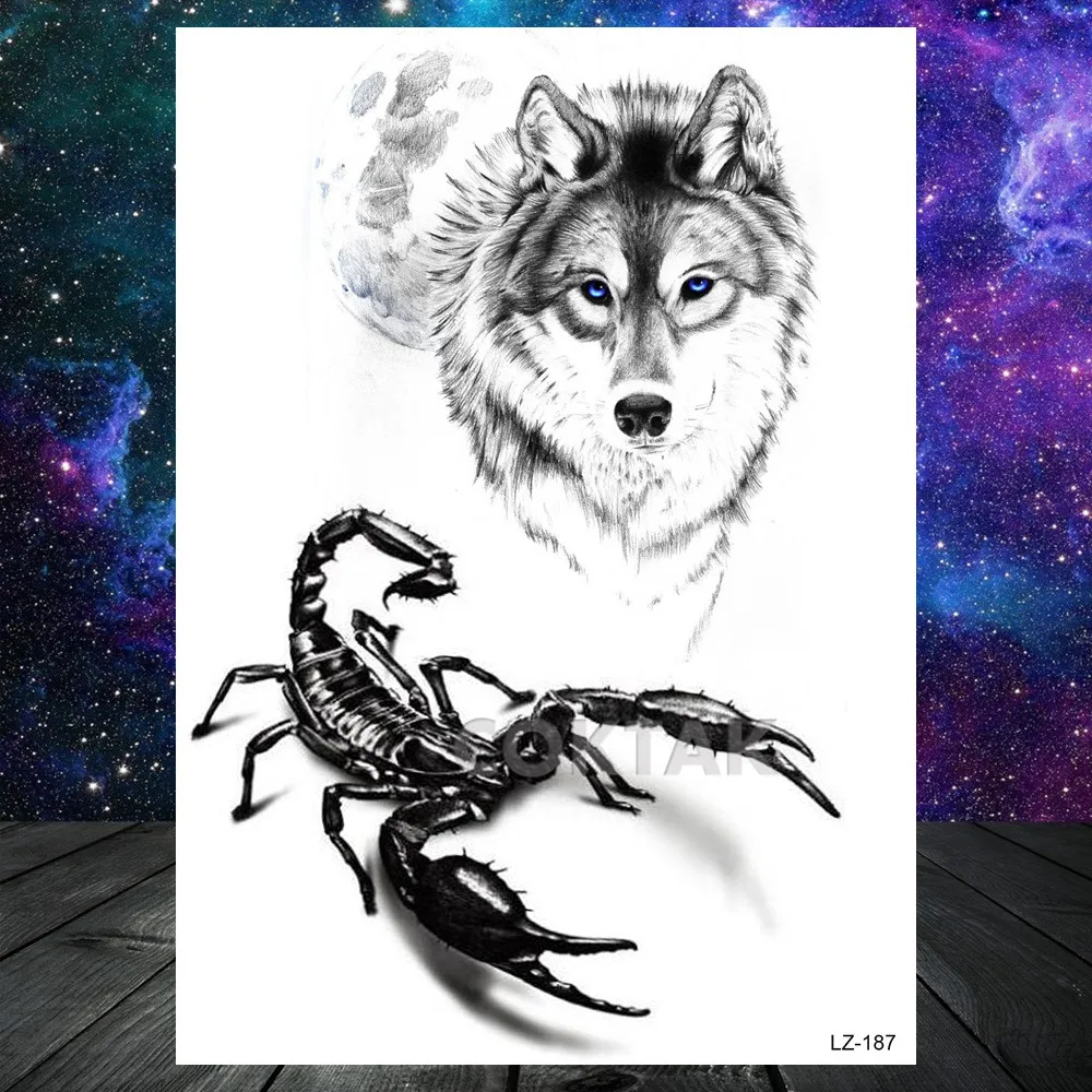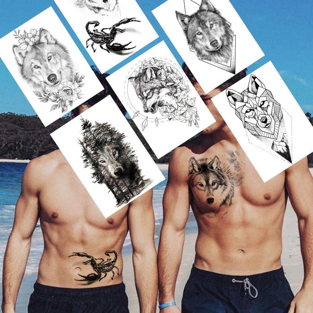 Временные татуировки сделай сам с волком, скорпионом, наклейка, искусственный геометрический цветок, лесное тату для женщин, водостойкое тату на руку мужской боди-арт Васит