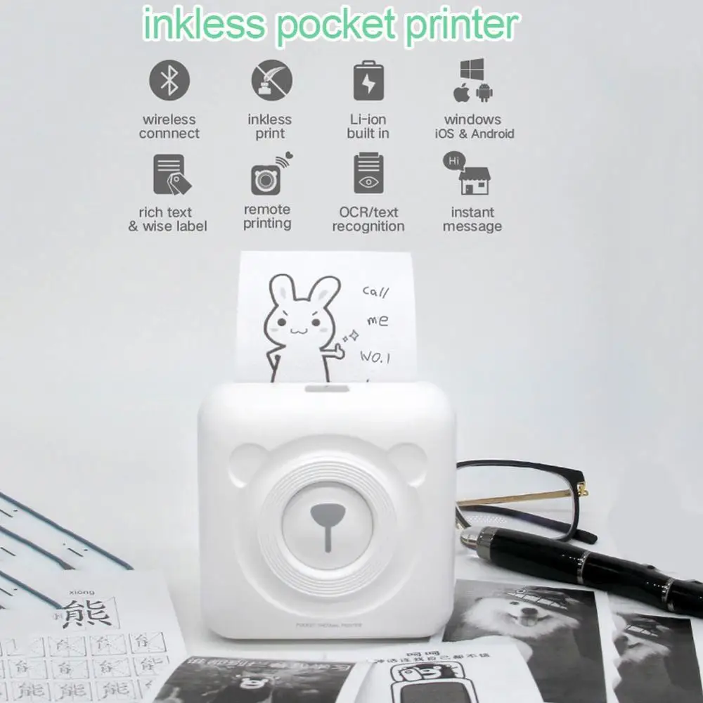 Карманный принтер легко носить с собой, нет необходимости в чернилах, используйте расходные материалы 57*30 мм тепловой материал