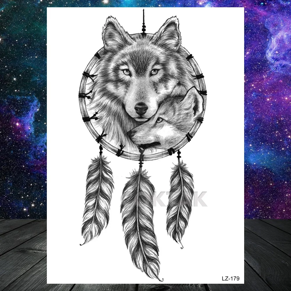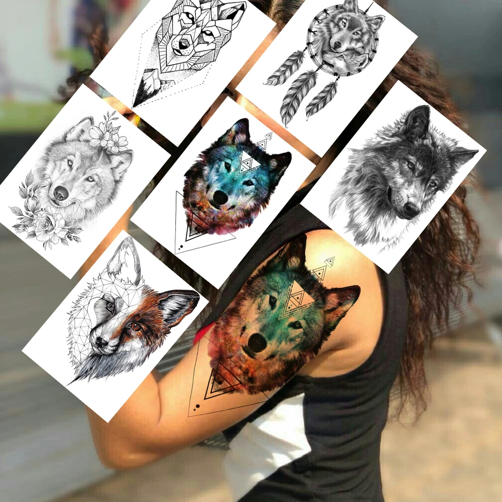 Тату временные геометрические, реалистичные поддельные татуировки с волком, Ловец снов, планеты, тату для взрослых, боди-арт, наклейка на руку для взрослых