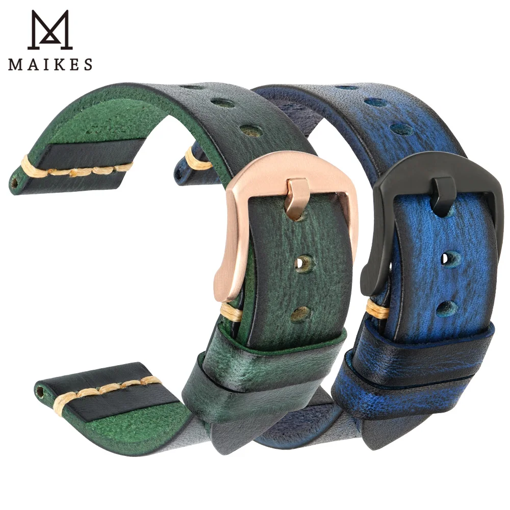 Ремешок MAIKES из телячьей кожи мужской, винтажный браслет из натуральной кожи для наручных часов, 20 мм 22 мм 24 мм, для Panerai MIDO Longines
