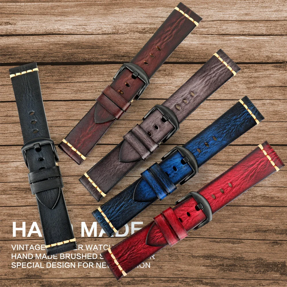Ремешок для часов MAIKES ручной работы из коровьей кожи, винтажный ...
