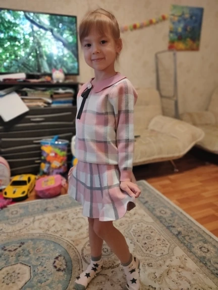 Замечательный костюм! Полностью соответствует фото и описанию. Брала внучке на вырост. Оденет через год, когда ей будет 3. Ткань толстая, мягкая, теплая. Приятная для тела и качественная синтетика. Без запаха. Пошито очень аккуратно. Доставка была быстрой. Покупкой очень довольна! Спасибо продавцу! Рекомендую всем этот магазин! ⁹