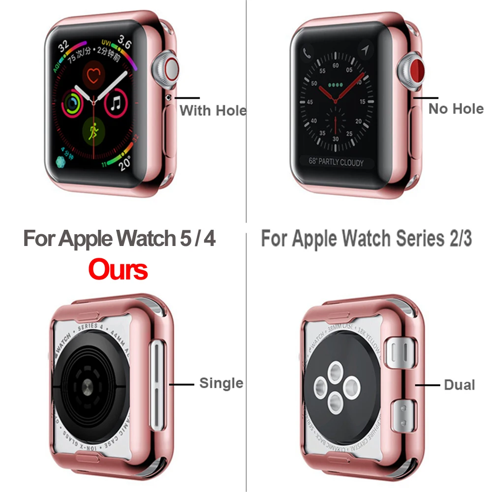 Защитный чехол для смарт-часов Apple Watch 5, 4, 40 мм, 44 мм, мягкий ТПУ с гальваническим покрытием
