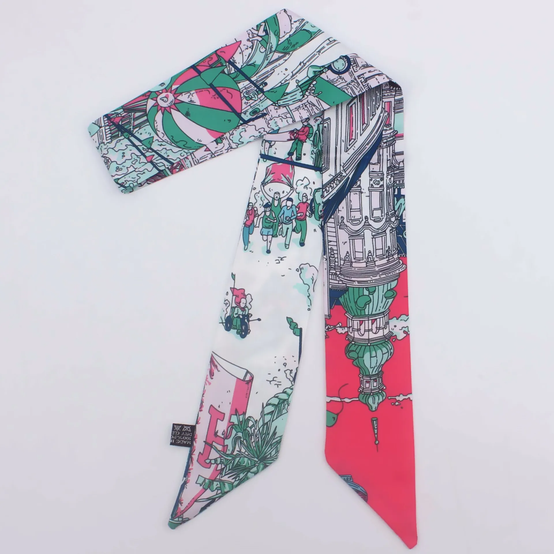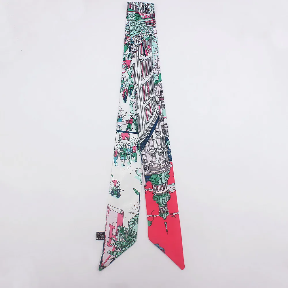 Шелковый шарф с принтом Paris Street 95 см * 5 см, новый брендовый женский головной убор, узкий шарф, длинная ручка для сумки шарфы, шарфы, Прямая поставка