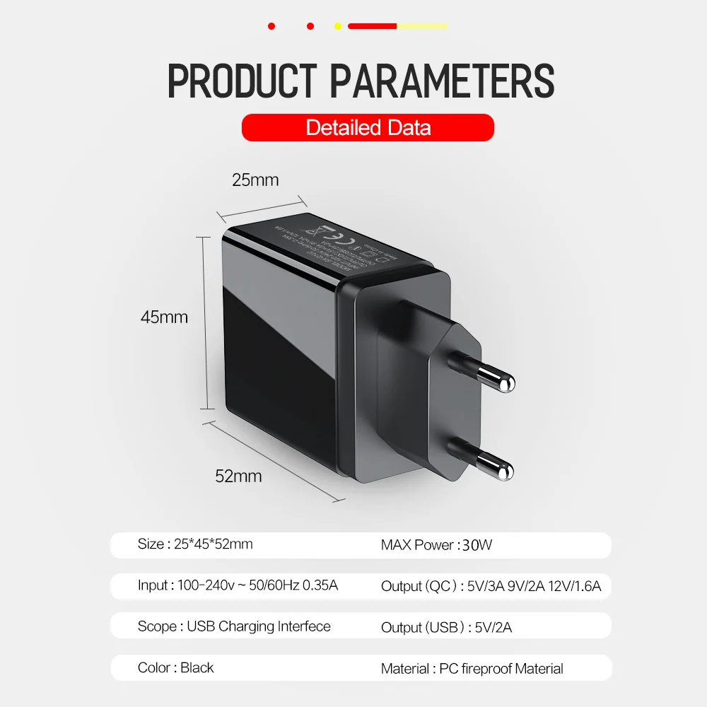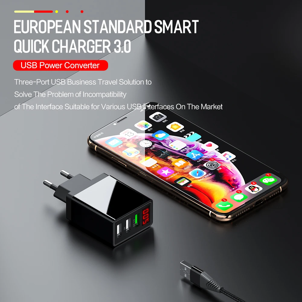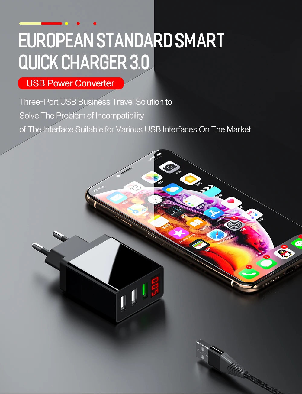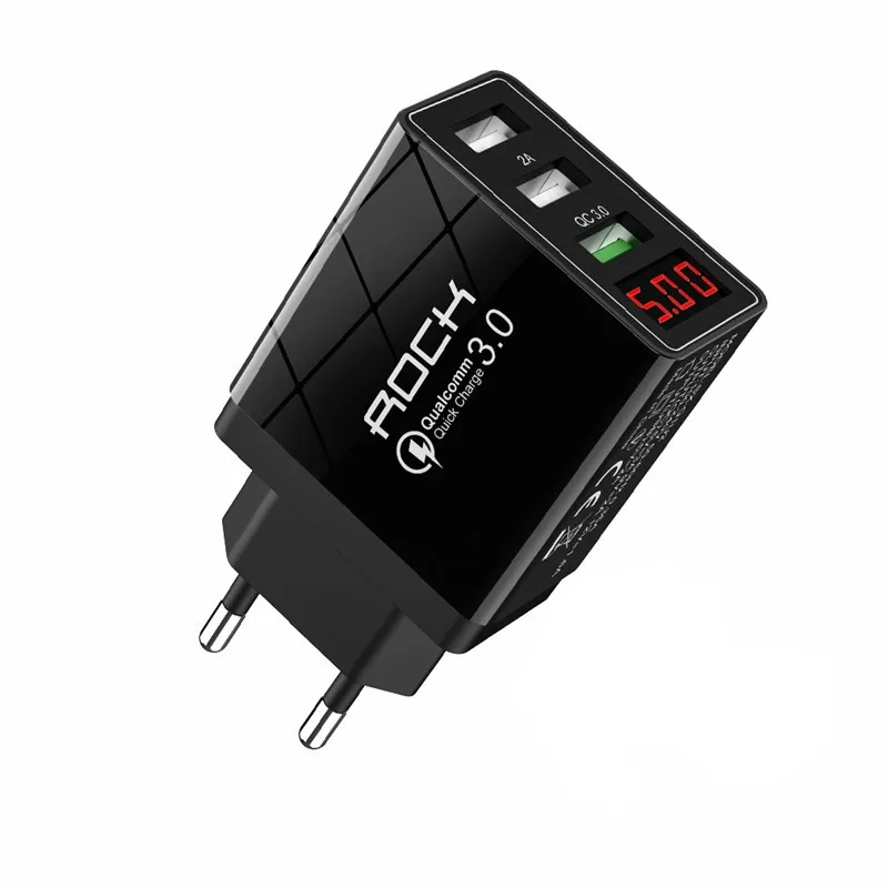 ROCK Quick Charge 3,0 зарядное устройство для телефона USB 30 Вт QC3.0, светодиодный дисплей QC Turbo, быстрая зарядка для iPhone XS XR Xiaomi mi 9 Samsung