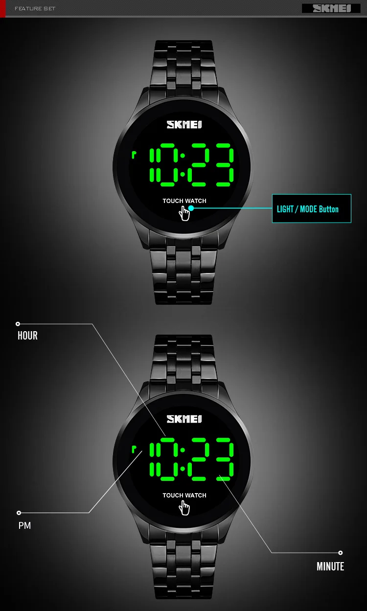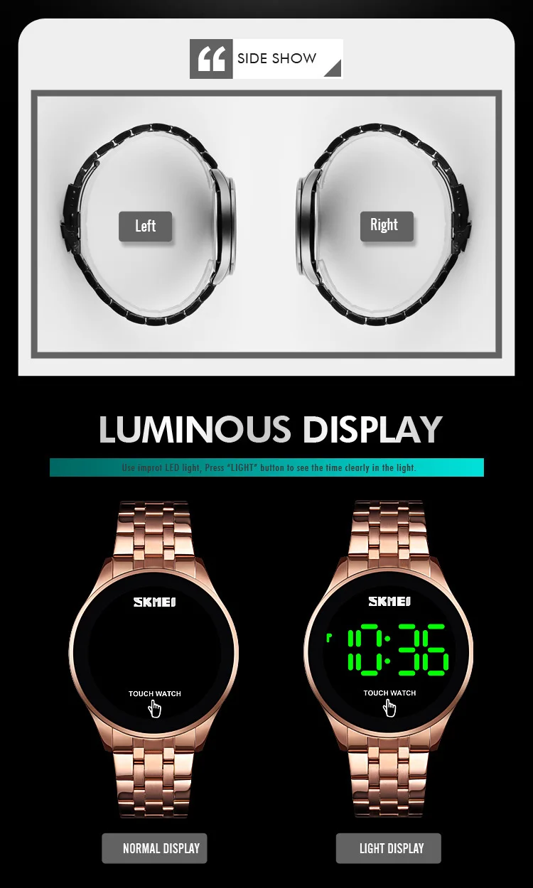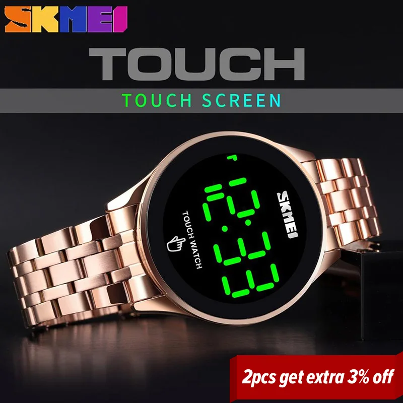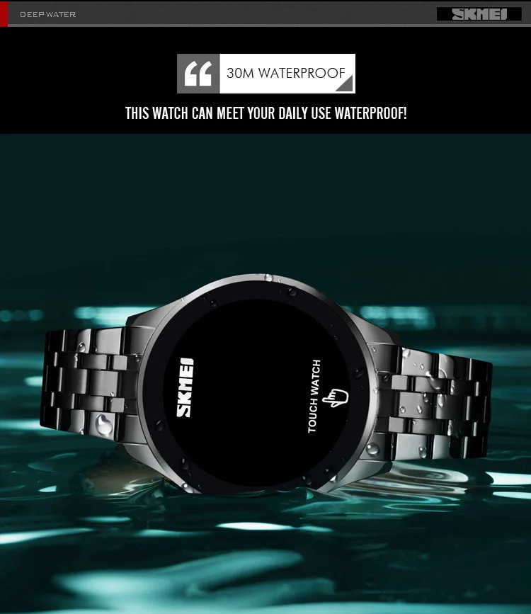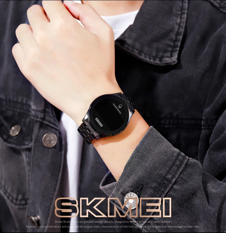 Часы наручные SKMEI Мужские Цифровые, Простые Модные светодиодные дисплеи с сенсорным экраном, с ремешком из нержавеющей стали, водонепроницаемость 30 м, 1579