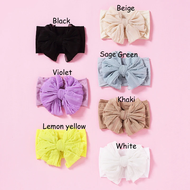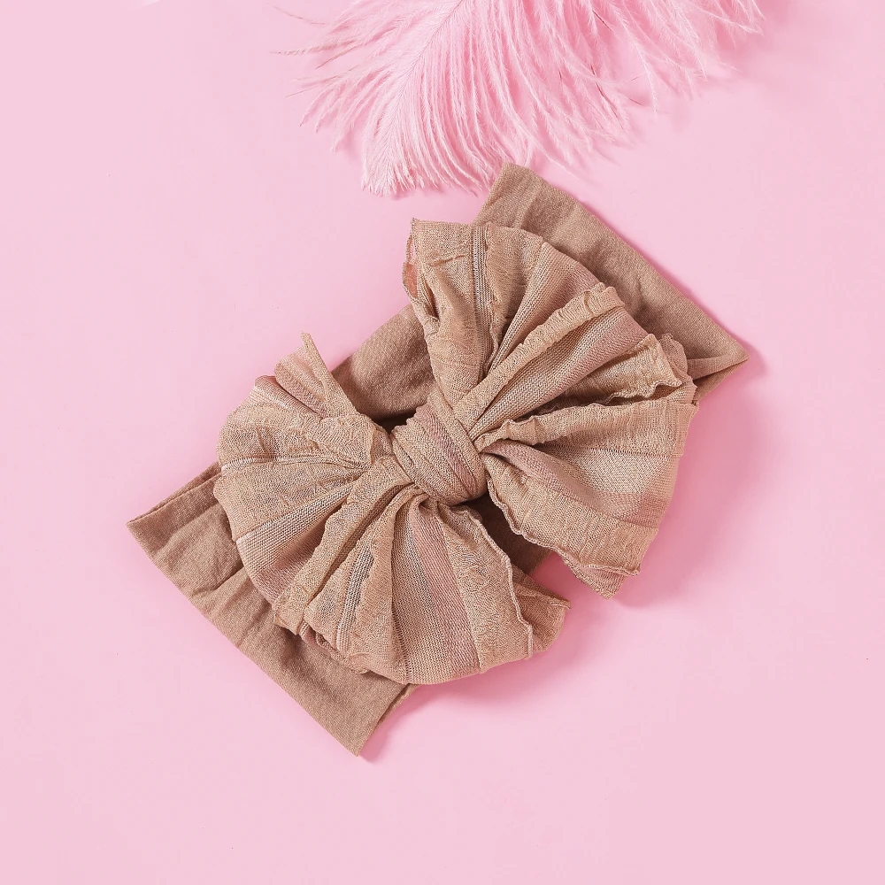 Грязный бант из нейлона и повязка на голову, и бантом для маленьких девочек широкие нейлоновые тюрбан, аксессуары для волос для маленьких девочек