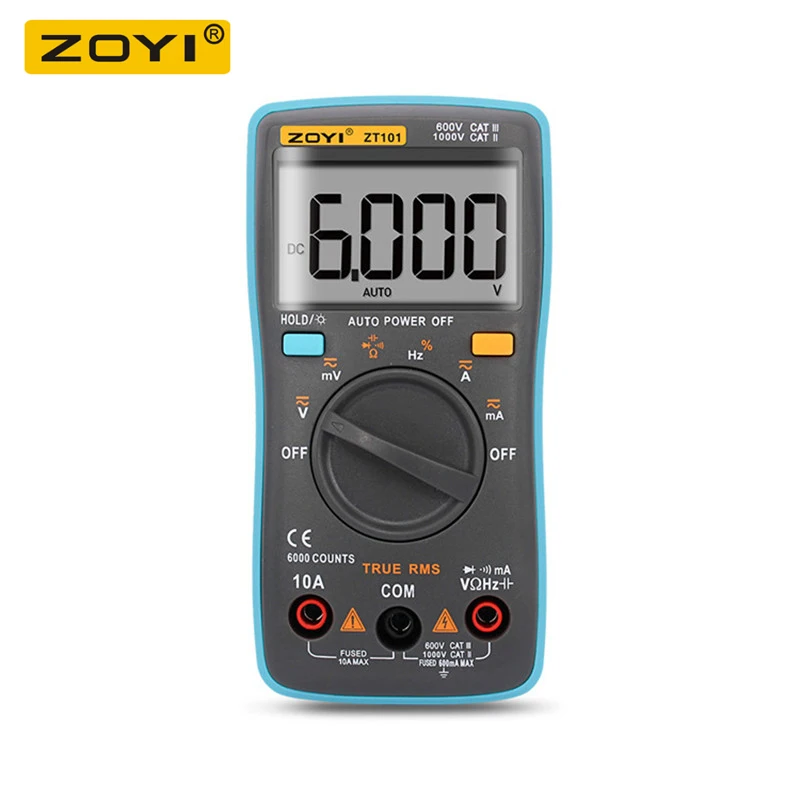 Цифровой портативный мультиметр ZOYI ZT101 с автоматическим диапазоном, 6000 отсчетов, стандартный вольтметр, Омметр, тестер температуры 65x130x32 мм