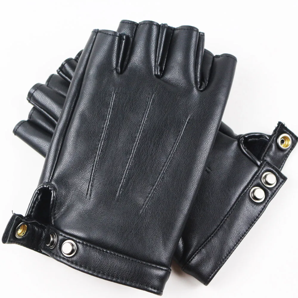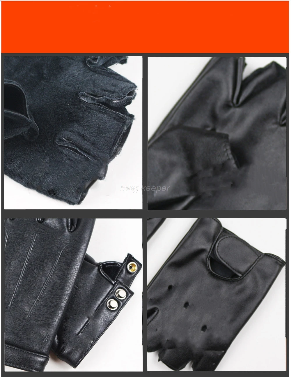 Перчатки без пальцев для мужчин и женщин, из экокожи, однотонные теплые митенки на пуговицах, на полпальца, для вождения, толстые панк-перчатки, черные, 2020