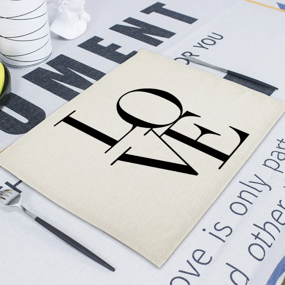Настольная салфетка с скандинавскими буквами, тканевый коврик с принтом любви, домашние обеденные салфетки, геометрические чайные полотенца для салфеток, свадебные салфетки