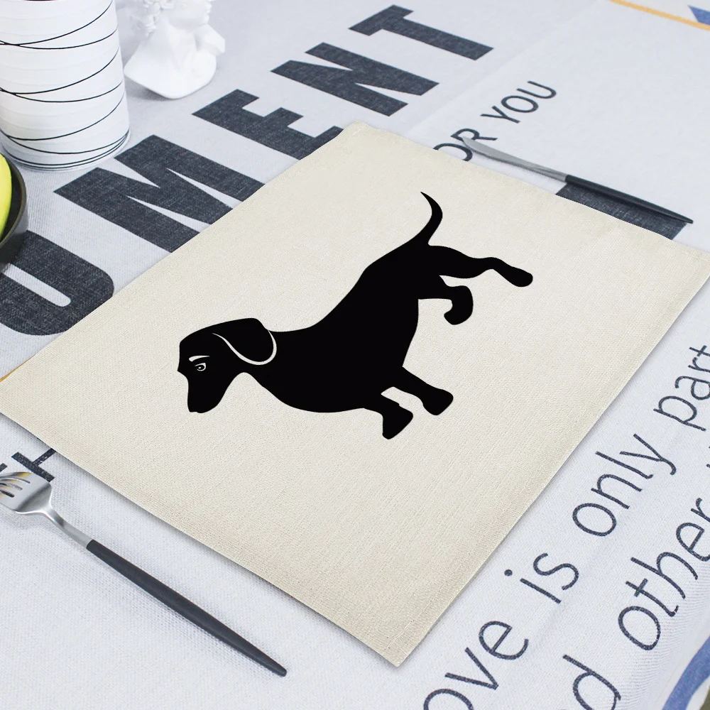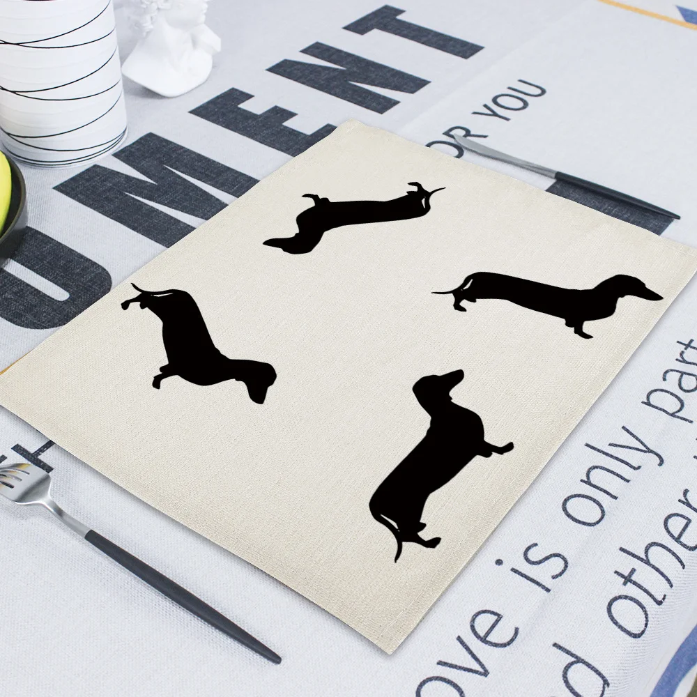 1 шт. такса, Настольная салфетка для собак, милый собачий чай, полотенце для животных, Льняные декоративные салфетки для кухни 42*32 см, обеденные салфетки Theedoek