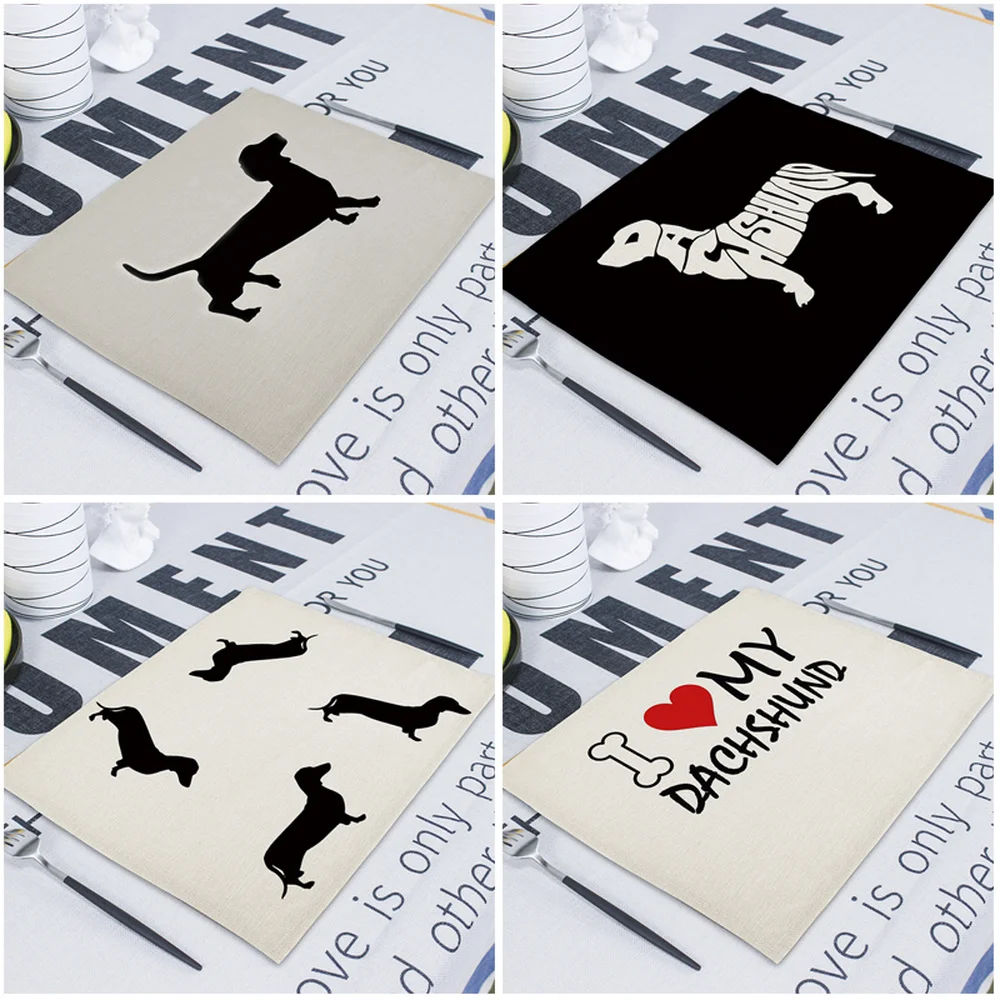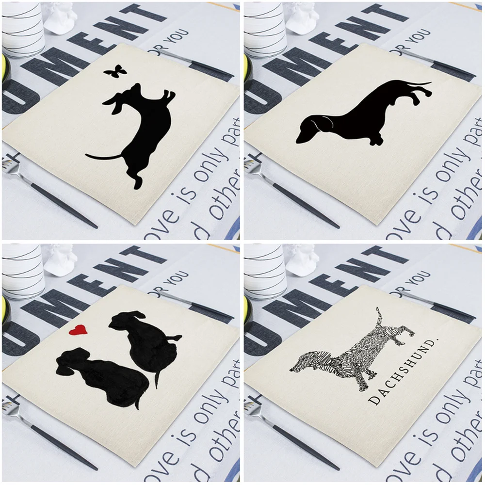 1 шт. такса собака настольная салфетка любовь милая собака чайное полотенце животные Льняные декоративные салфетки для кухни 42*32 см столовые салфетки Theedoek