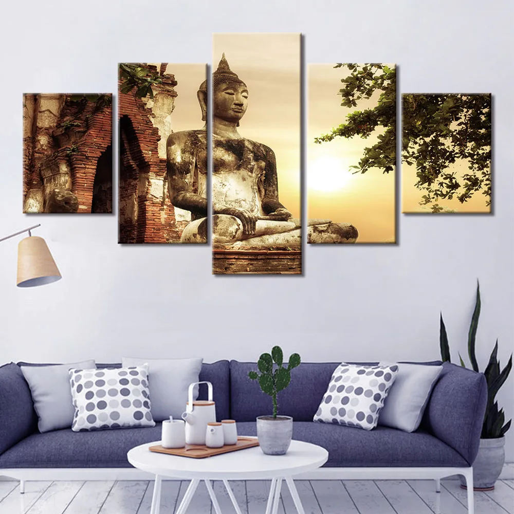 5 шт. HD печатные холсты, Золотая картина будды, холст, печать, Дек...
