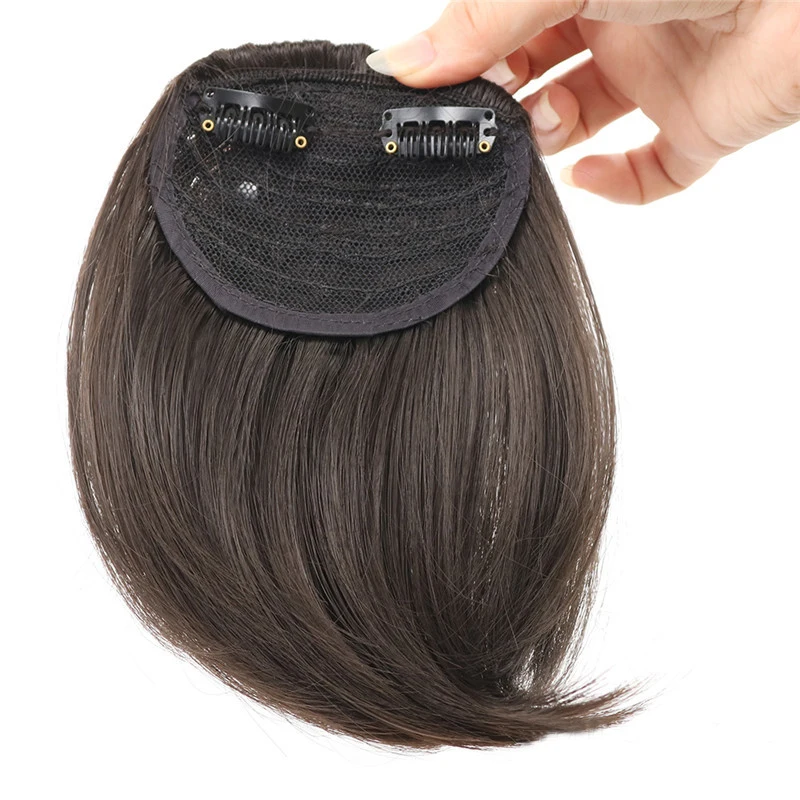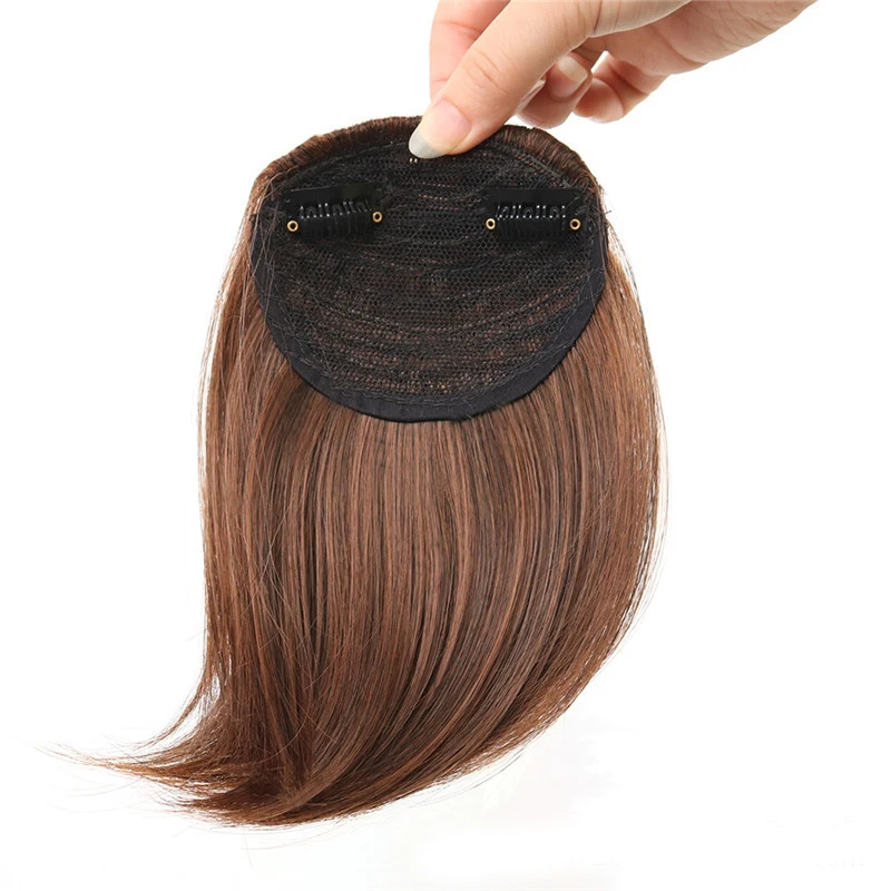 Темно-коричневыечерные синтетические челки для девушек, высокотемпературные волосяные шиньоны для женщин с двумя зажимами в бахроме