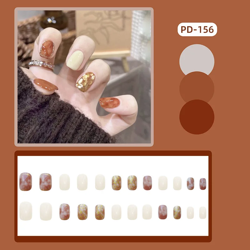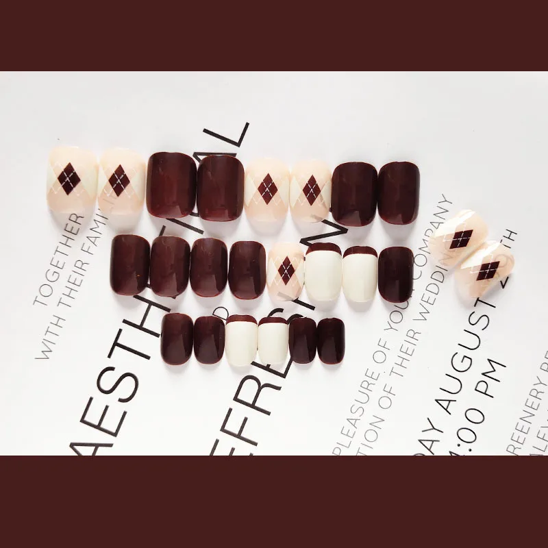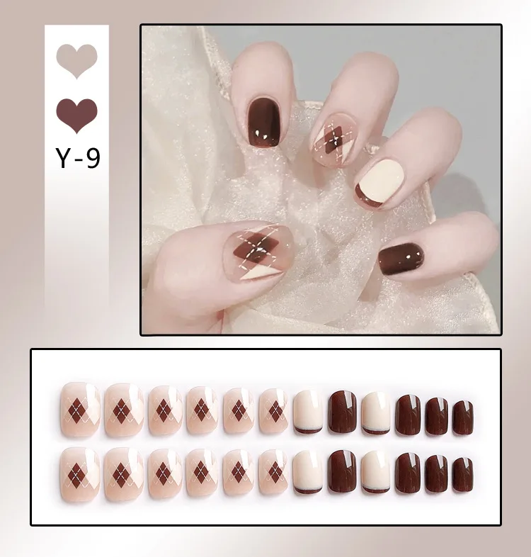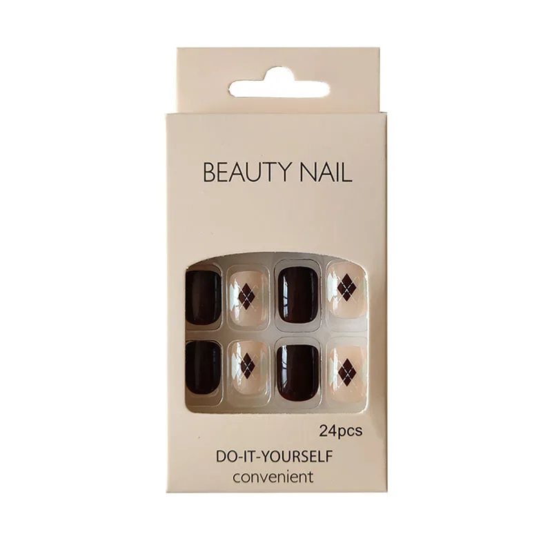 Набор накладных ногтей, набор из 24 искусственных ногтей темно-кофе...