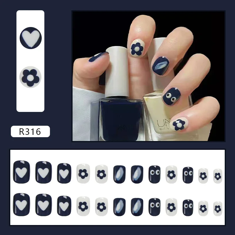 24 шт., декоративные искусственные акриловые ногти в японском стиле