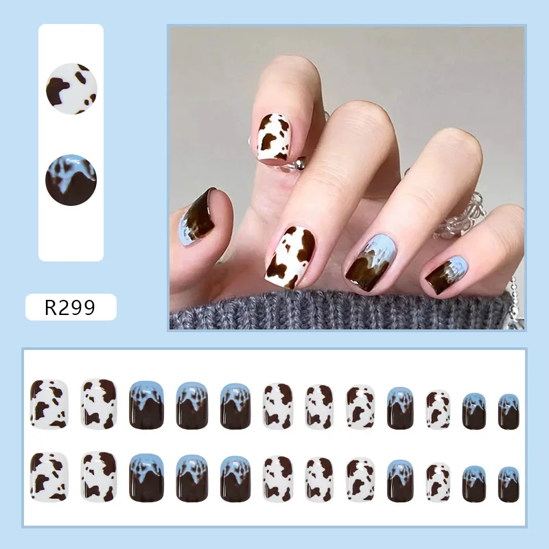 24 шт., декоративные накладные ногти с клеем, 4 рисунка