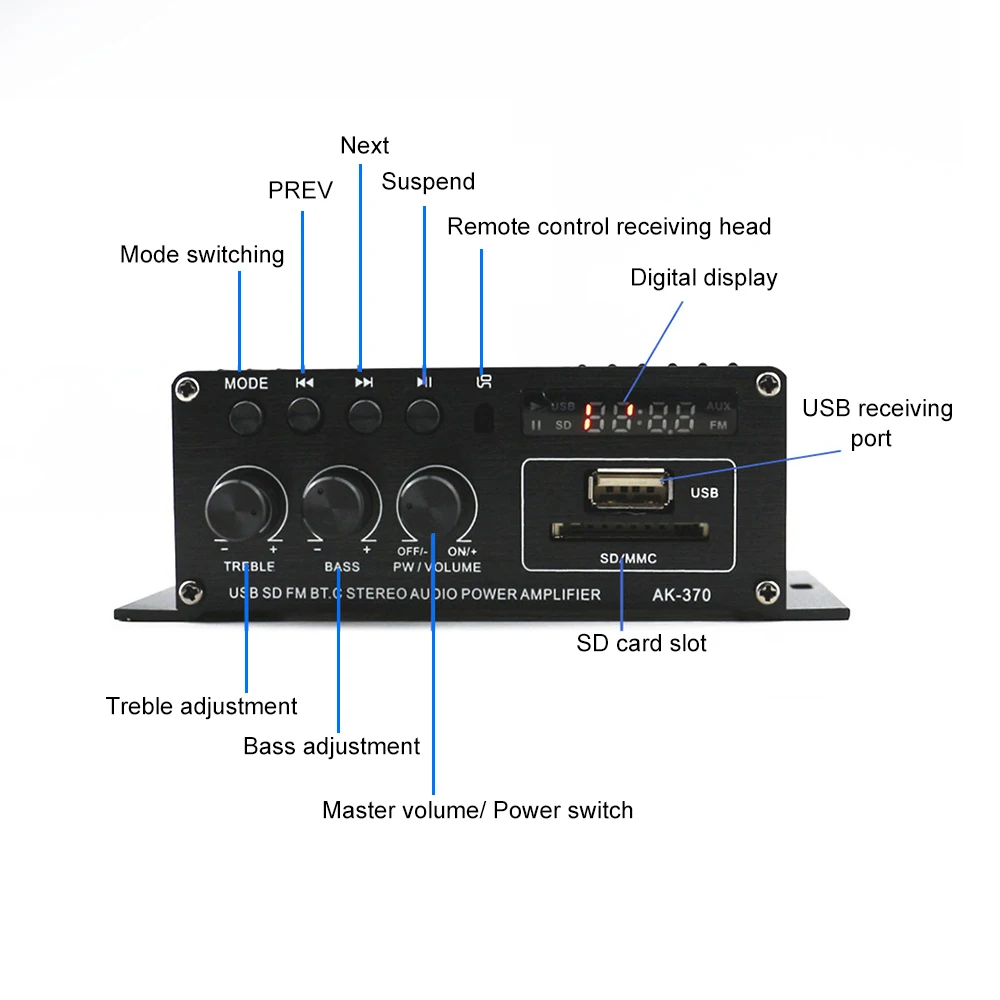 Мини аудио усилитель мощности AK370 12 В, Bluetooth усилитель, аудио приемник, mp3-плеер, FM радио с пультом дистанционного управления для автомобилядома