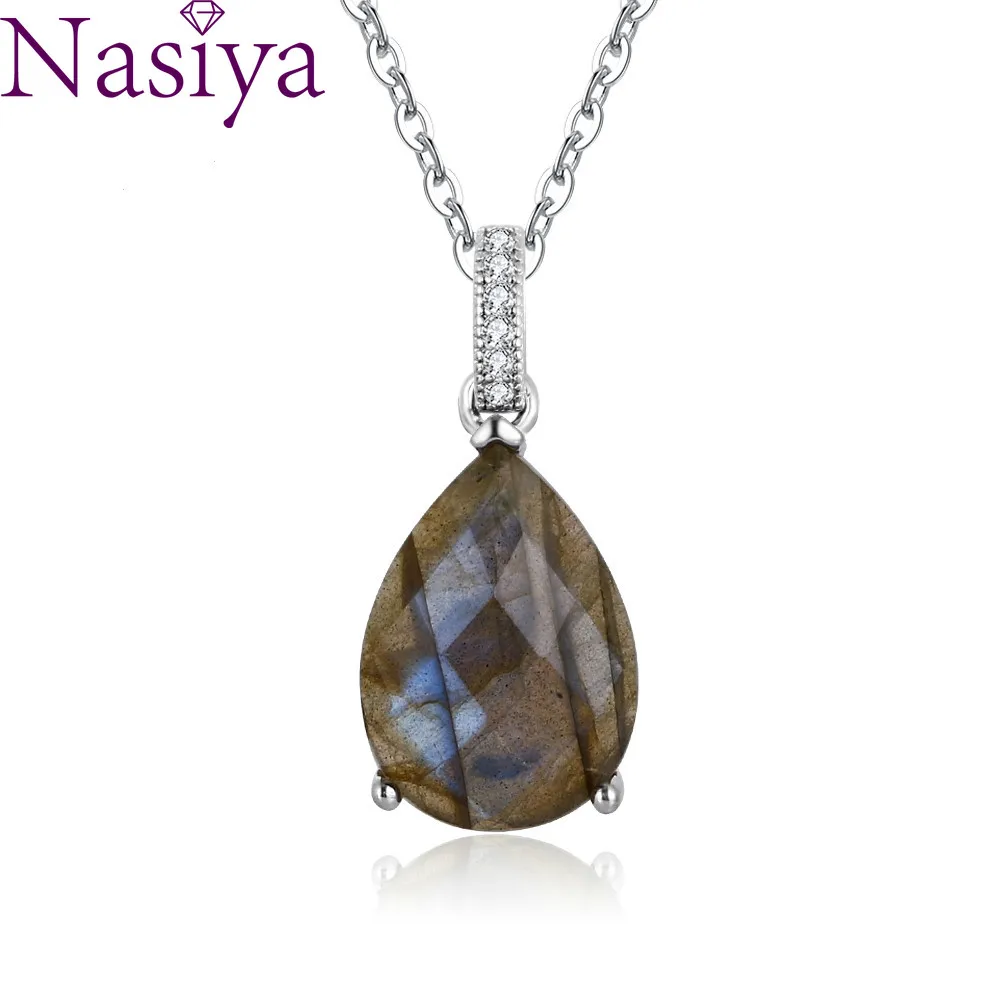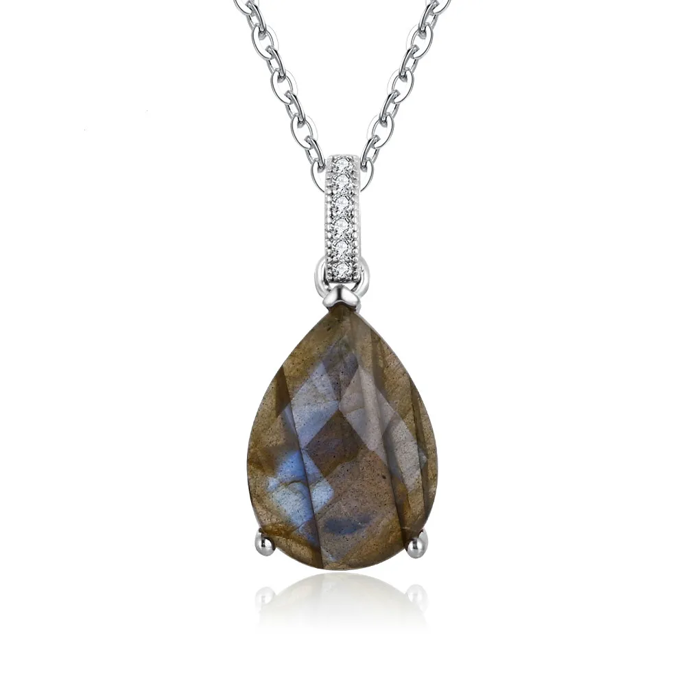 Серебряное ожерелье с подвеской в форме крупной груши 13*18 мм Лабрадорит и желтый Агат, ожерелье с подвеской в Подарок на годовщину
