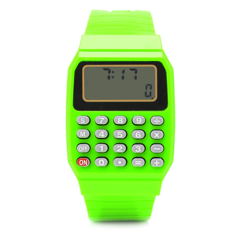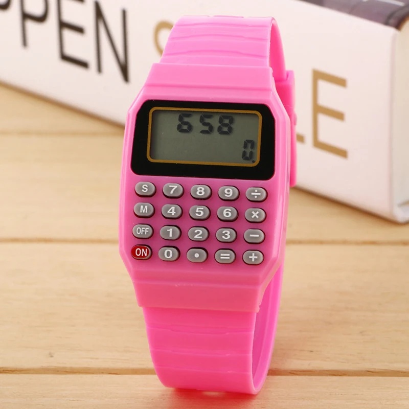 Модный детский силиконовый многоцелевой электронный калькулятор, наручные часы